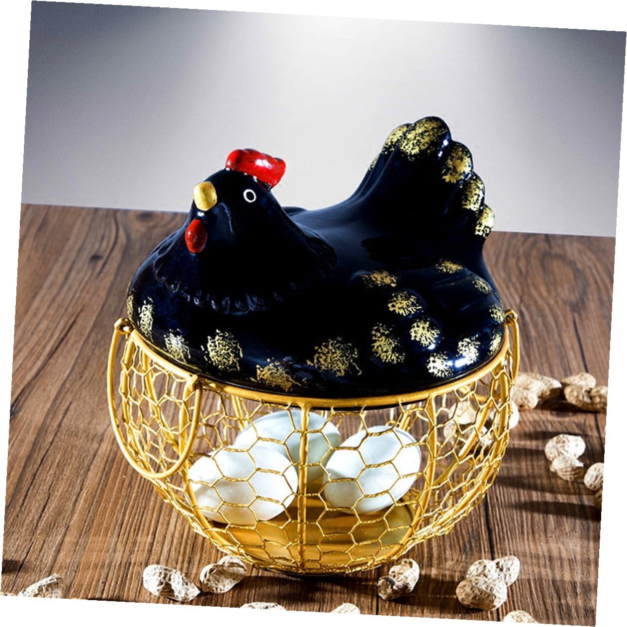 Package List 1 x egg cage Features - Size: About 22.00X19.50X19.50cm/8.65X7.66X7.66inch. -Product Info:Iron egg cage - Material: Ceramics, Iron. - Color: Golden, Black. - Weaving iron cage, suitable for placing all kinds of small objects egg holder decoration. - It is portable and lightweight, easy to carry egg baskets for fresh eggs. - Multipurpose design, vegetables, fruits, eggs can be placed and stored in it metal chicken basket. - The excellent workmanship of our product will bring you a countertop egg holder. - It not only can be used as a basket, also can be used as a home desktop adornment egg basket.Goods Descriptionegg basket This is a kitchen storage basket, manufactured with premium ceramic and iron materials which is and safe to use.countertop egg baskets Providing plenty of room to organize eggs, snacks fruits, vegetables in addition to other goods.counter egg holder Large storage space, can store more things