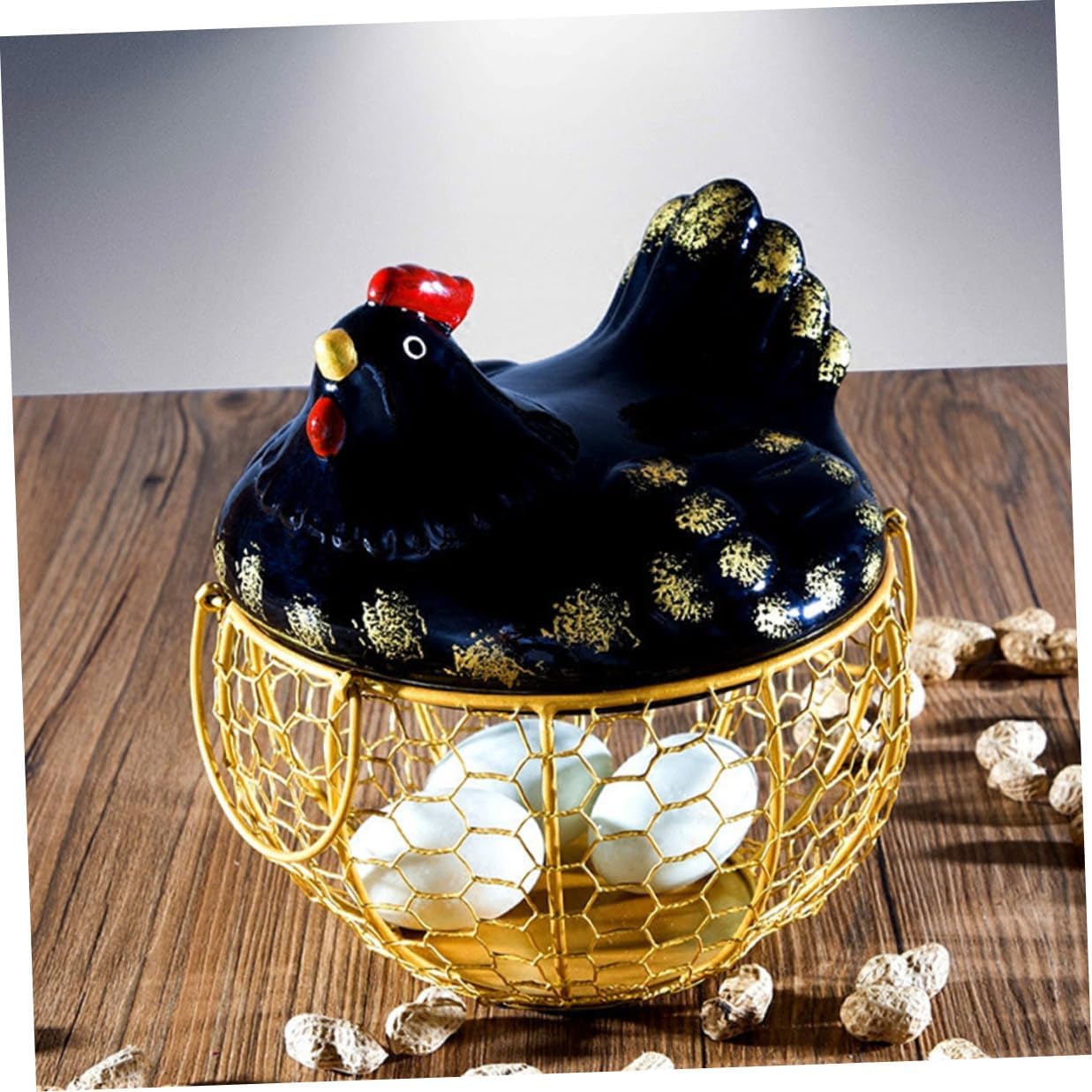 Package Include 1 x egg cage Features - Material: Ceramics, Iron. - Size: About 22.00X19.50X19.50cm/8.65X7.66X7.66inch. - Color: Golden, Black. -Product Info:Iron egg cage - It can help keep your kitchen countertop tidy and save space metal egg holder. - This storage basket can help you keep a neat and orderly kitchen small egg basket. - It is not only a storage basket, but also a desktop ornament egg gathering basket. - Perfect for home, restaurant, buffet, hotel, party and more egg holders. - Made of ceramic, iron, very and reliable for a long period egg basket cute.Goods Informationminimalist egg holder It can also be used as an egg storage basket.countertop egg holder Fine craftsmanship, not easy to deform or break, to use.egg baskets This is a storage basket for storing fruits, vegetables, food and more.egg container Simple appearance, smooth and rounded edges, comfortable hand feel