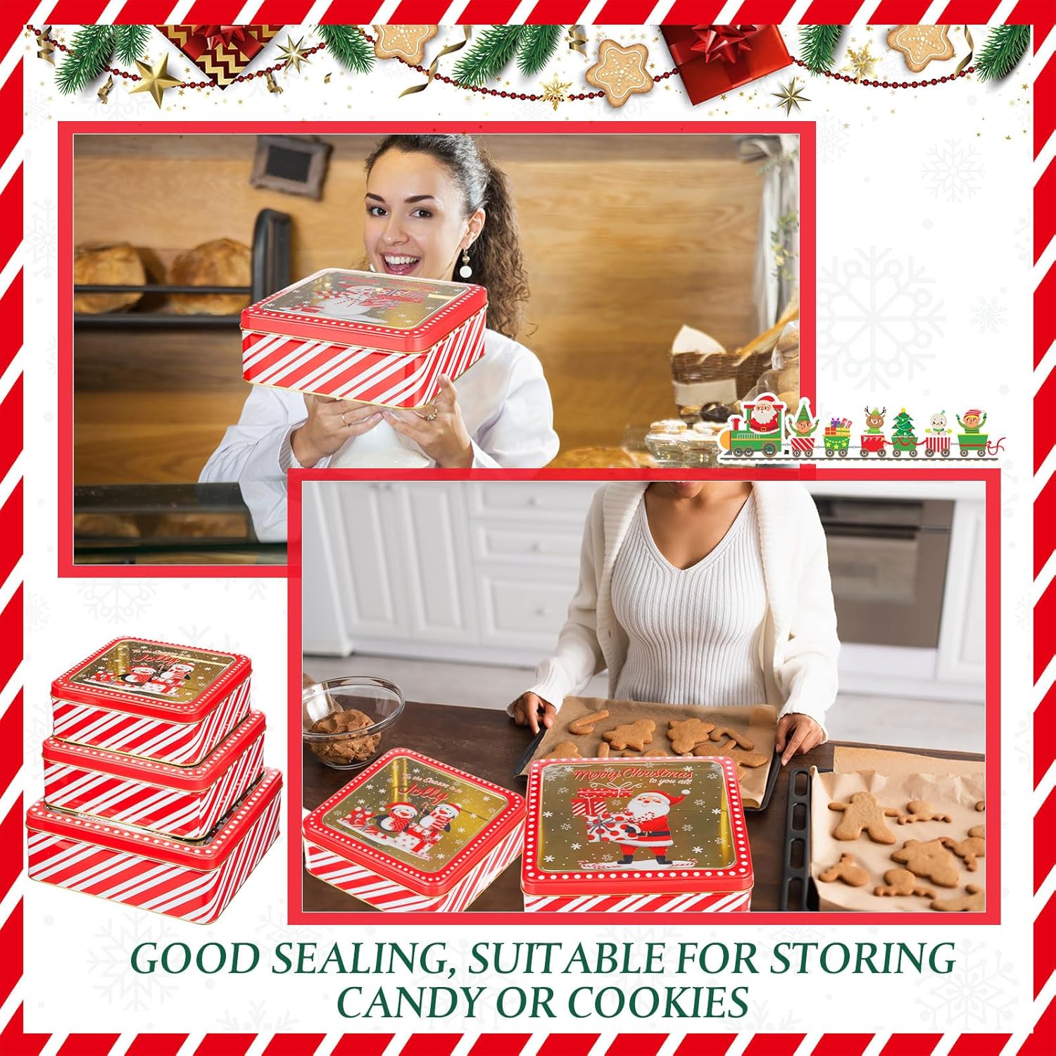 Features: These Christmas cookie tins are not just for cookies. They are versatile containers that can hold various items such as candies, chocolates, and even non food items like jewelry and coin collections, making them an ideal gift for your friends. Featuring snug fitting lids, these Christmas cookie tins offering secure closure, ensuring that your cookies or treats are well preserved. The tight lids also prevent the contents from shifting during transport, keeping your treats safe. Specifications: Material: metal Color: red and green Size: about 8 x 8 x 2.9 inches/ 20.3 x 20.3 x 7.3 cm, 7 x 7 x 2.4 inches/ 17.8 x 17.8 x 6 cm, 5.9 x 5.9 x 2.2 inches/ 15 x 15 x 5.5 cm Package includes: 6 x Christmas cookie tins with lids Notes: Manual measurement, please allow slight errors on size. The color may exist a slight difference due to different screen displays.
