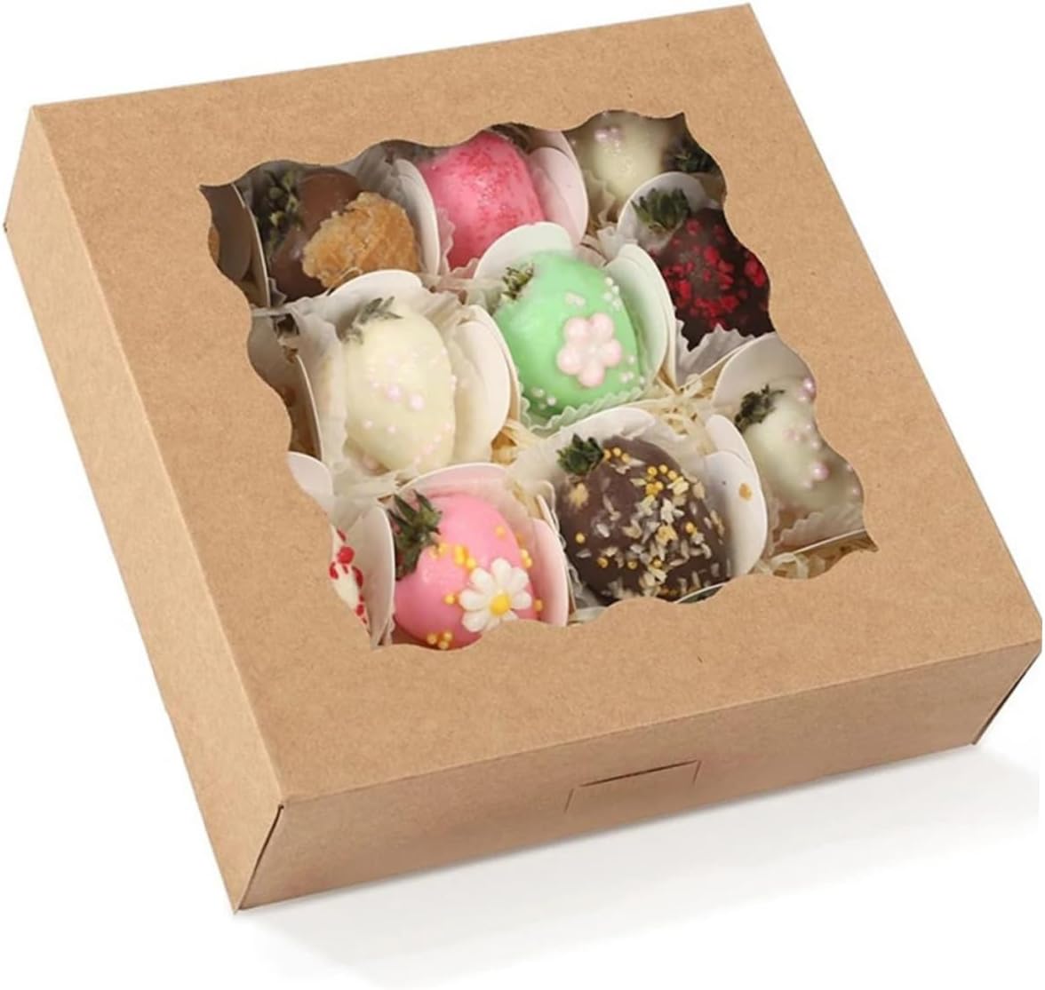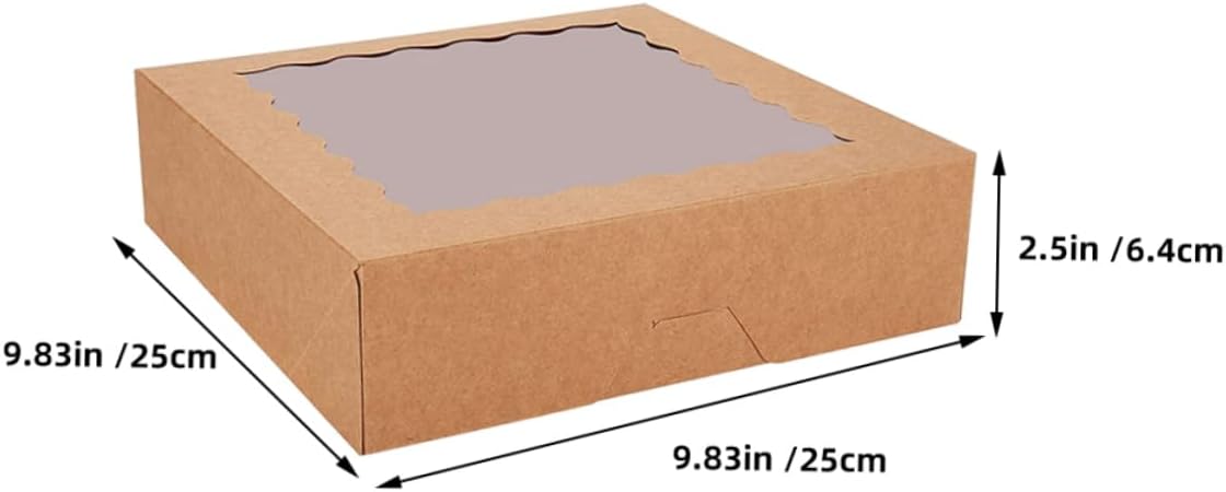 Package Include 10 x cake packing boxes Characteristics - Features clear window: with better decorative effect and let you identify the food inside faster bakery boxes with window - Color: Light Brown dessert boxes with window - Lightweight: for easy taking to any places you want, and portable, largely save your time and efforts cake box - Easily packing: you can use this box to packing your small cake, and welcome your friends to enjoy your party cake box replacement - Size: 25.00X25.00X6.40cm/9.82X9.82X2.52in cake display box -Material:Paper, PE clear cake box - Fill it with some delicious small cake: chocolate cake, to bring joy to your family or friends cake packing box - Suitable Capacity: The cake boxes provide ample packaging for multiple cakes, for various occasions and events cake carrying boxGoods Descriptionbakery boxes Ideal for wrapping cupcake, mousse cake or any small present you want to give.cookie boxes with window With clear window, this cake box is used for storing and protecting your products and items, especially cakes.Pie Boxes The cupcake packing box protecting your cakes from all sides
