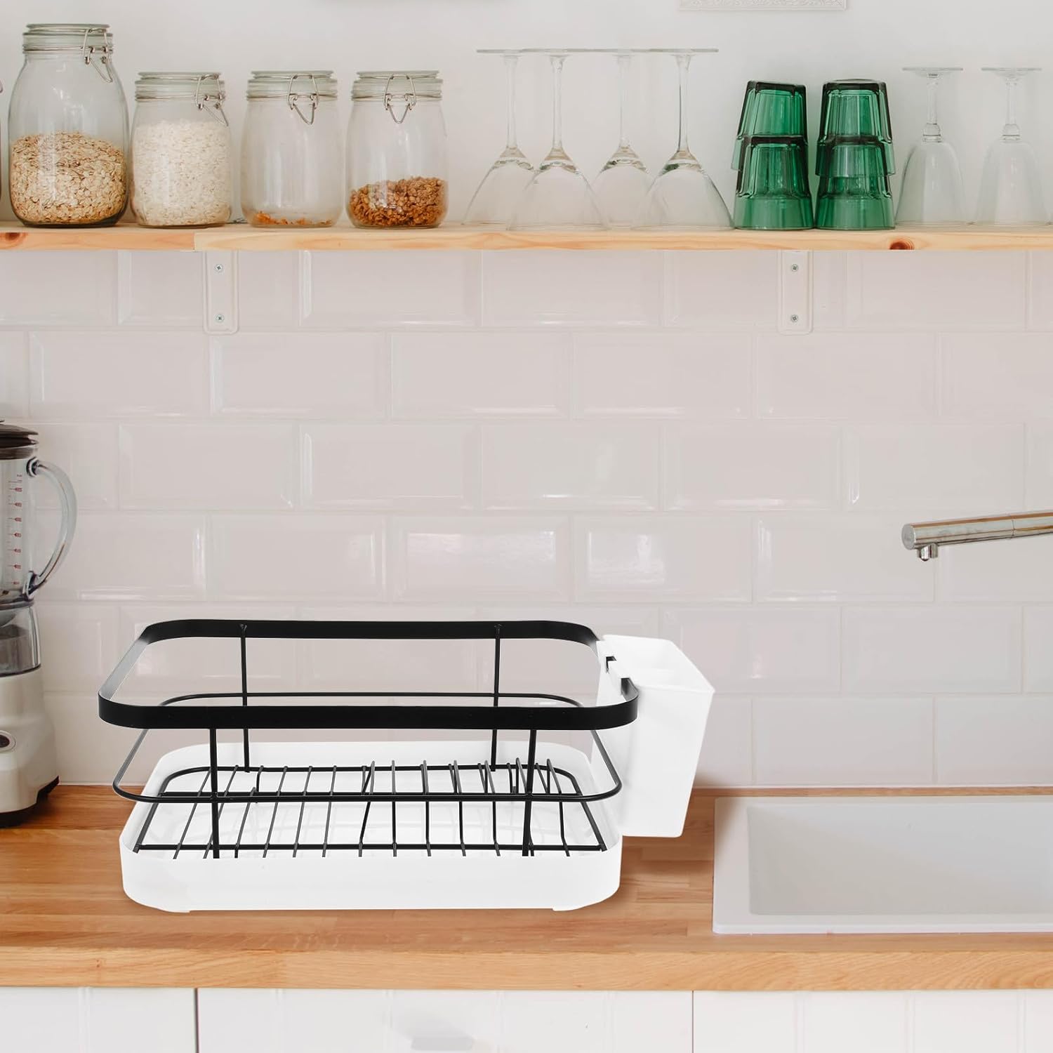 Package Include 1 x base 1 1 x hanging box Characteristics -Material:Carbon steel, PP - Color: Black - Size: 32.50X25.00X15.00cm/12.77X9.82X5.89in -Product Info:Dish storage rack - With draining design on the bottom, the drying rack for kitchen counter can keep your dishes cleaner, avoid water remaining dish holder. - Made from reusable materials with good craftsmanship, this dish drying rack can support long servicing time. - Kitchen dish rack can keep your items on the cabinets or countertop clean and tidy dish storage rack. - Proper height of this dish rack will store the bowl solidly, so the bowls and dishes won't fall easily metal cutlery rack chopstick holder. - The material is safe and light, which is wear resistance and practical for the lasting time use.Goods Informationdry rack for dishes The sleek design is stylish and modern, matching any kitchen decor.utensils drying rack This kitchen worktop dish rack is a versatile and practical storage solution for your kitchen.kitchen cutlery storage can hold dishes, plates, utensils, and other kitchen items.dishes drying rack Made of good materials, it is and reliable, and won't easily deform over time.dish drying rack large capacity It is also easy to install and can be disassembled and cleaned at any time