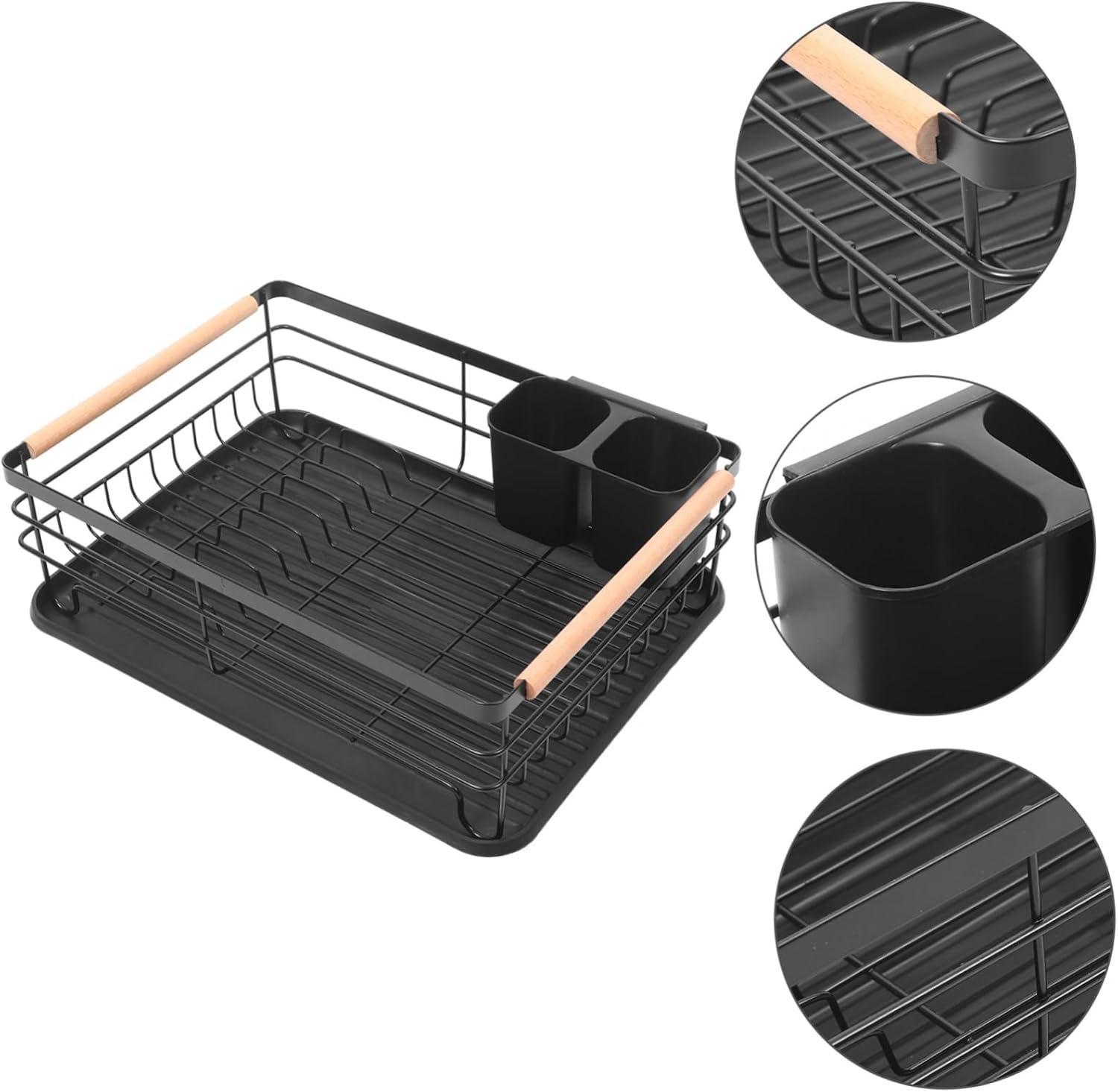 Description Manufactured with iron material which is durable for long- lasting use. Use them in the kitchen, organize your home storage space, clean and orderly to get rid of the. It also keeps your plate, dish, bowl, chopstick and other cutlery. Features- Color: Black- Material: Iron- Size: About 43. 00X28. 00X14. 00cm/ 16. 90X11. 00X5. 50inch- The drainage design performs well in daily use and prevents standing water on cutlery or kitchen utensils.- Can be used to store dishes, bowls, chopsticks, spoons, plates and other tableware, suitable for families, hotels, restaurants.- Selection of high grade iron material, stable structure, and other characteristics, durable.- The space- saving design does not take up any space, and both large and small disks can be stored.- Drainage design, keep the dishes dry at all times to avoid the growth of.- Color: Black.- Size: 43x28cm. Package Including 1 x Dish Drying Rack