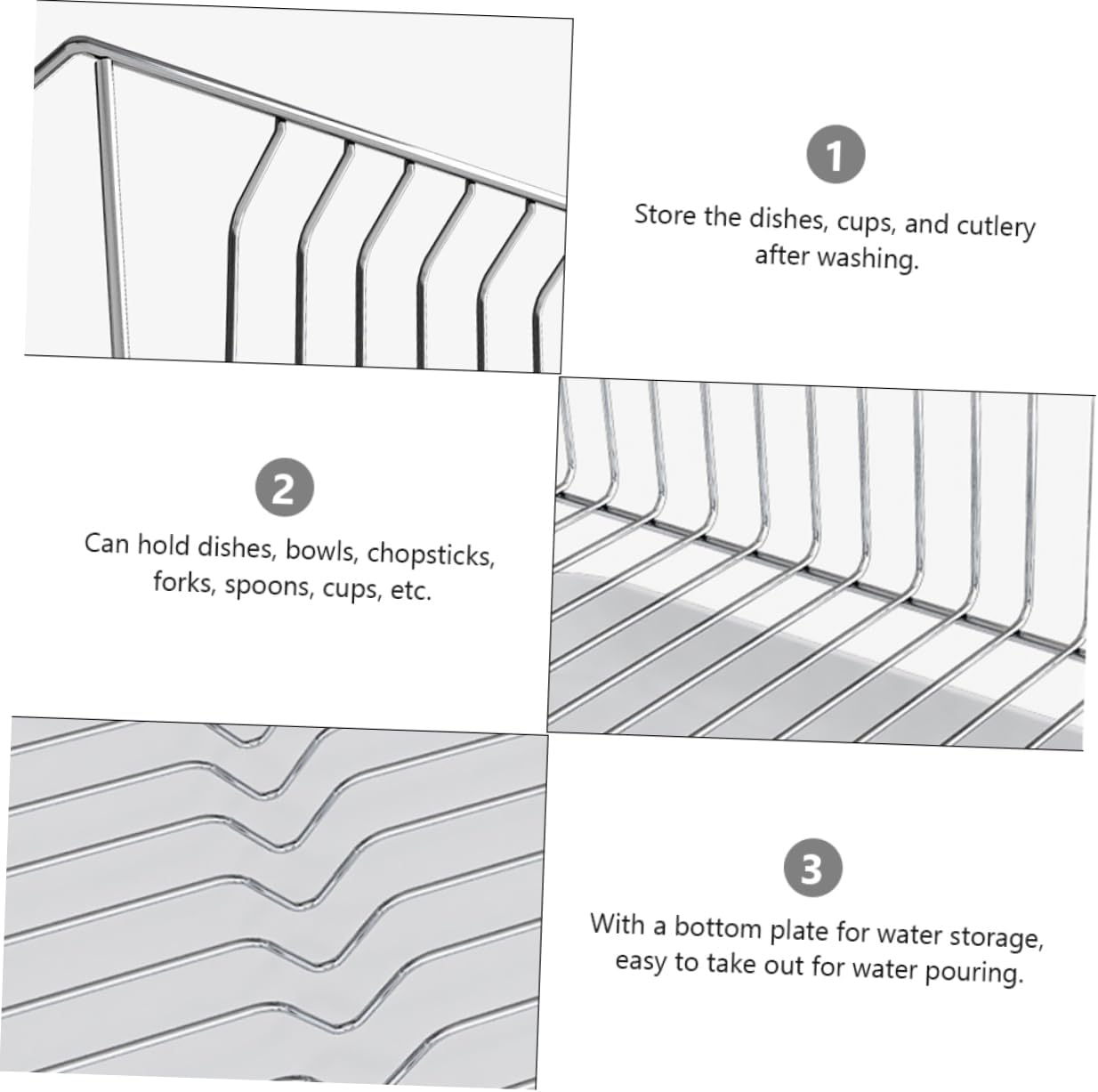 Package Include 1 x storage rack Characteristics -Material: stainless steel Kitchen Utensils Holder -Color: silver Vegetables Storage Basket -Size: 39.00X29.00X10.00cm/15.33X11.40X3.93in Storage Rack - Can hold dishes, bowls, chopsticks, forks, spoons, cups, etc Draining Bracket. - Made of material, Dish Rack. - Store the dishes, cups, and cutlery after washing Draining Rack. - Smooth, well made, without rough or edges Kitchen Supplies. - With a bottom plate for water storage, easy to take out for water pouring Dish Drying Rack.Goods DescriptionSundries Rack A nice helper for you to keep kitchen clean and neat.Vegetables Storage Basket It has enough space and can store different tableware safely.Dish Rack Are you still upset about the of kitchen utensils? This kitchen organizer will help you solve the problem