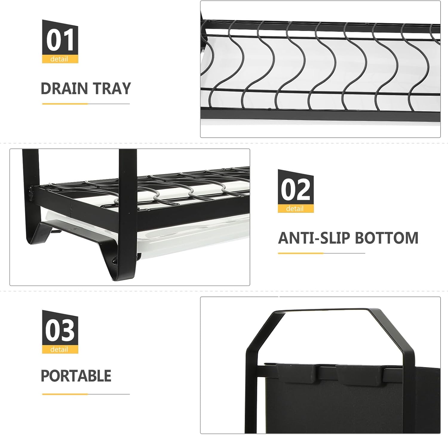 Package List 1 x Bowl Rack Characteristics -Lightweight: It's lightweight, making it easy to move around and store sink drainer. -Material:Carbon Steel -Contemporary design: Its sleek and modern design adds a touch of elegance to any kitchen drying rack with drip tray. -Versatility: Not just for the kitchen, it can also be used in the bathroom to store toiletries and in the office to hold stationery large-capacity dish rack. -Portable: The compact size and lightweight design make it a convenient option for outdoor activities such as camping and picnics. -Size:35.00X16.20X15.50cm/13.76X6.37X6.09in -Color:Black -Product Info:Bowl rack chopstick cage -With a utensil holder design on the side, you can also use this holder to storage your utensil at kitchen dish drying rack..Goods Informationdish drainer for kitchen counter It is suitable for storing and draining bowls, chopsticks, etc.dish drying rack This kitchen utensil rack can keep things neat and tidy on the cabinets or workbenches.stainless steel bowl drainer , with complete functions and convenient use.sink drainer This Tableware Drying Rack is made of , beautiful appearance and fine workmanship