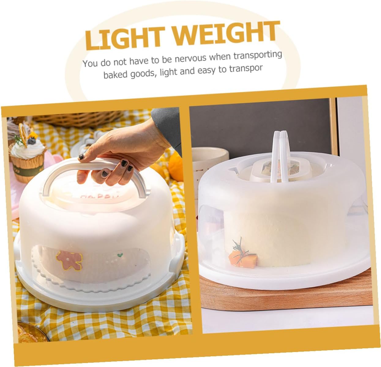 • Cake carrier with lid--with light weight, compact size, and handle, it is easy to carry and store when not used,birthday cake holder