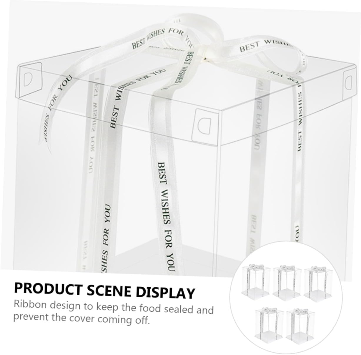 Package Include 5 x cake packaging boxes Features - Material: Food grade white card, PET. - Size: 26.00X26.00X25.00cm/10.22X10.22X9.82inch. - Color: White (Random color for ribbon). - Applicable: for 8 inch cake Baking Cake Container. -Product Info:Birthday Cake Box - Very suitable for wrapping Christmas, New Year, birthday, holiday cakes Cake Wrapping Case. - Ribbon design to keep the food sealed and prevent the cover coming off Transparent Cake Boxes. - With ribbon for you to carry your cake or other food everywhere Square Storage Container. - Made of material, which is very and safe to use. - No bad odor, easy to clean, not easy to break, for car travel, outdoor picnics, etc Cake Holder.Goods DescriptionFood Packaging Boxes Transparent surface helps you see the inner clearly.Cake Holder This item is a cake carrier, made of and sturdy food grade white card, PET material.Transparent Cake Boxes It can be used for refrigerator or kitchen cupboard.Cake Packing Case The ribbon design makes this storage organizer more portable and practical