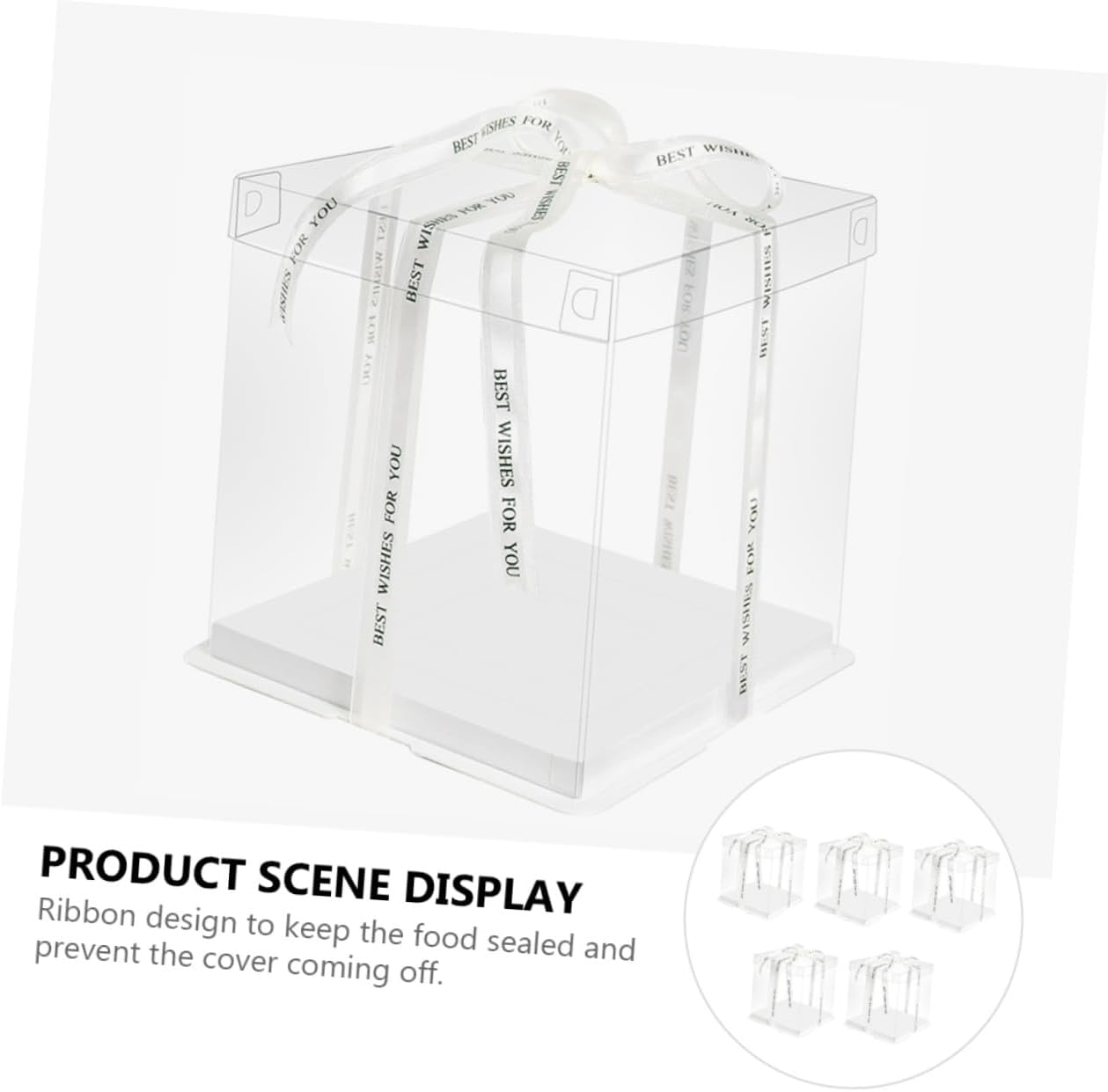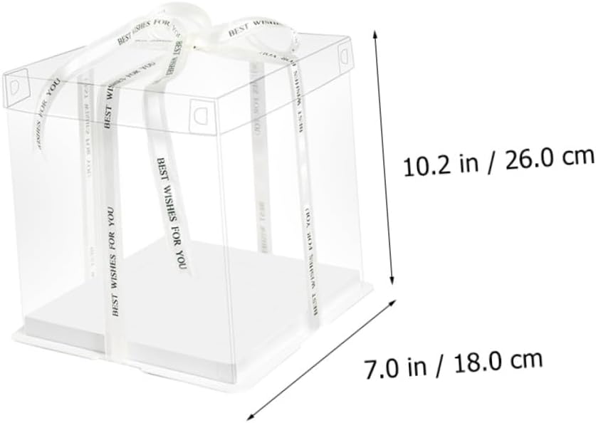Package List 5 x cake packaging boxes Characteristics - Material: Food grade white card, PET. - Size: 26.00X26.00X18.00cm/10.22X10.22X7.07inch. -Product Info:Birthday Cake Box - Color: White ( color for ribbon). - Applicable: for 8 inch cake Cake Wrapping Case. - Featuring reusable, it can be used for times and easy to clean Cake Container. - Transparent design can show off your cakes inside without exposing to the air Cake Holder. - They can be used for shower, birthday party or other party Cake Carrier. - Simple and practical design, and easy to use and carry Food Packaging Boxes. - , environmental protection, safe and .Goods InformationCake Wrapping Case Sealing design can prevent leakage effectively.Baking Cake Container This is a practical cake box.Cake Holder This cake box can help you to pack your cakes and transparent design allows you see the cake directly.Cake Storage Container With the ribbon handheld design, this cake box is very convenient to carry.Food Packaging Boxes Environmentally friendly material, safe and to use