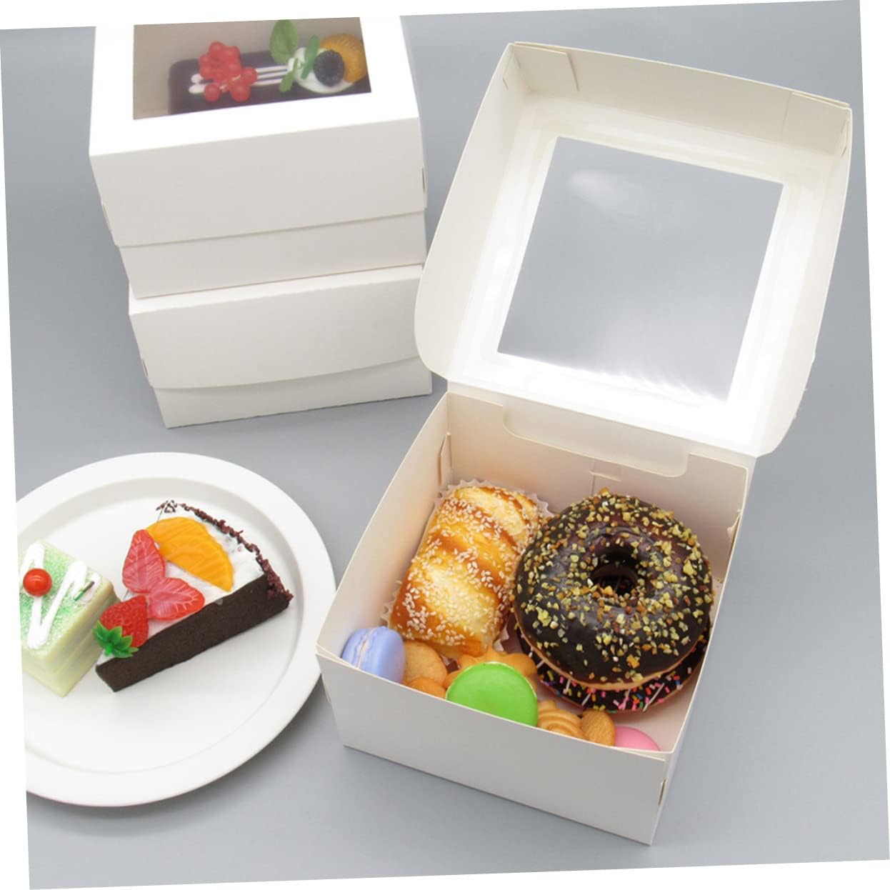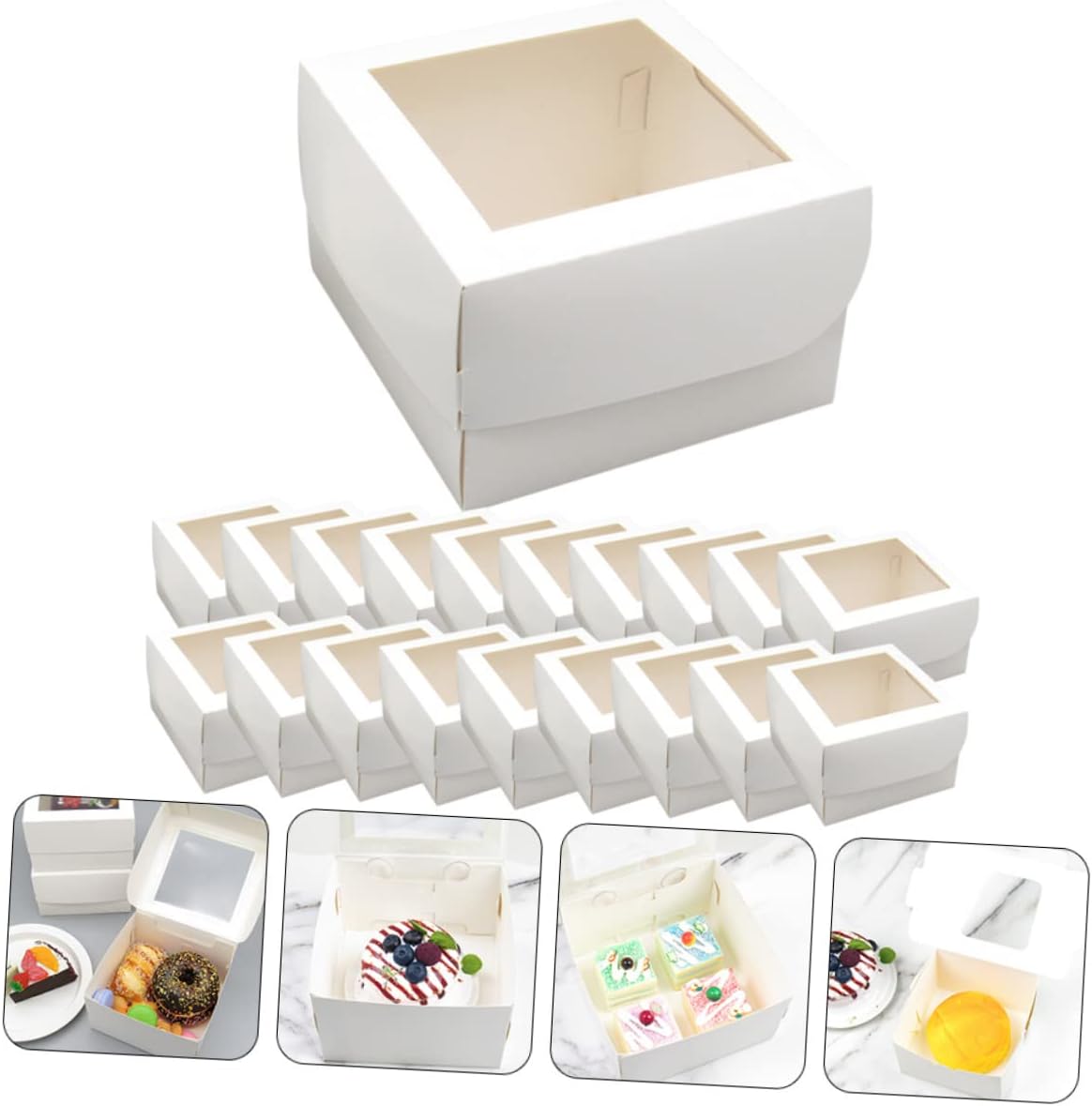 Package List 20 x Package Boxes with Paper Trays Characteristics -Color:White household cookie box -Material:Paperboard and PVC accessory -Size:15.50X15.50X10.00cm/6.09X6.09X3.93in cookie boxes with window - They are the nice choices for you to use to hold your dessert, use them with confidence bakery supplies. - These Treat Boxes are made of paperboard and PVC material, which is for use baking accessories. - These Dessert Boxes are suitable for holding cakes, biscuits, desserts, pastries and other things box for cookies. - The simple design, make them more convenient to storage your pastries It is very useful sweet case for home. - The surface of the party Cookie Boxes are smooth, that will never hurt your hands cake wrapping boxes.Goods Descriptionpaperboard boxes They are great for making cookies, candles, and ornaments.party cupcake boxes This item is a party Cookie Box.biscuit container They are the box to prepare some treats for guests at a party.cookie boxes Use these boxes to organize items or send fancy to loved ones.household bakery boxes Suitable for storing and packing cookies! Using paperboard and PVC material, healthy and .bakery boxes for packing.paperboard cookie container They are sturdy yet lightweight and easy to travel with