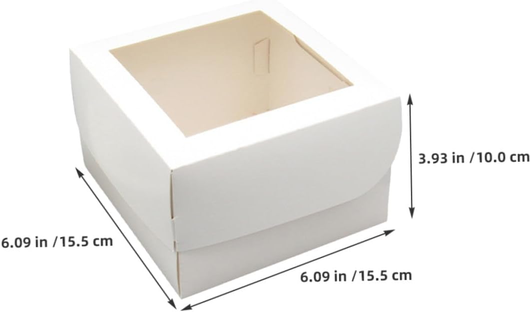 Package Include 25 x Cake Boxes Features -Size:15.50X15.50X10.00cm/6.09X6.09X3.93in -Product Info: Baking packaging boxes -Transparent window for dessert boxes: the clear window design enhances the presentation of your treats, making these bakery dessert boxes ideal for showcasing cakes, pastries, and more cake holder -Color:White -Sturdy and reliable cake storage boxes: made from paper, these cake packaging boxes safe transportation and storage of your baked goods, maintaining their for desserts -Size for small bakery boxes: designed for cakes, these small treat boxes with window provide a compact and stylish packaging solution for desserts and baked goods -Versatile boxes for desserts: suitable for a variety of treats, including macarons, pies, and chocolates, these pastry packaging boxes offer flexibility for different bakery needs dessert boxes with window -Paper bakery boxes: crafted from recyclable materials, these paper dessert boxes provide an option for packaging cakes and other sweet treats -Material:Paperboard,PVCGoods Informationbakery treat boxes These portable cake boxes with window are for charcuterie, sweet treats, or small desserts.cookie boxes for packaging Whether for bakery use or personal present, these food packaging boxes combine functionality with style.bakery takeout containers The clear window design enhances presentation, making them great as cupcake individual containers or pastry boxes