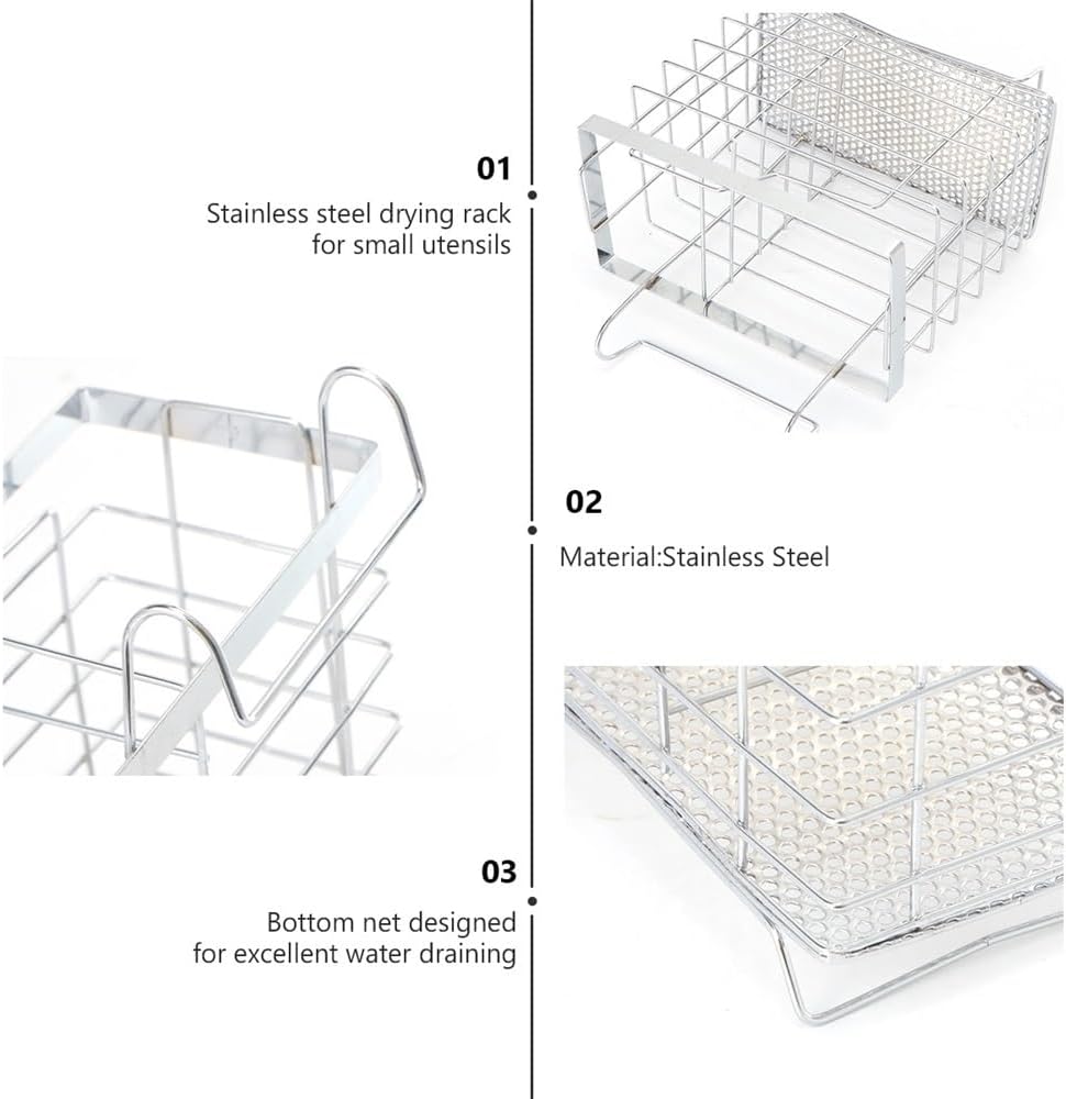 Product Name: Kitchen Utensil HolderColour: as shown in the pictureMaterial: stainless steelSize: 16.00X15.00X9.00 cm / 6.29X5.89X3.54 inches. Package Includes:1 Chopstick holderPlease note:1. Please check the size and colour before purchase.2. Items other than those shown in the product photos are not included.3. Please note that due to different monitors, there may be slight colour differences, please understand.4. The above data is for reference only, the size is measured manually, each person's body shape may be different, please prevail in kind, thank youThe kitchen organiser can be placed effortlessly on any work surface or shelf
