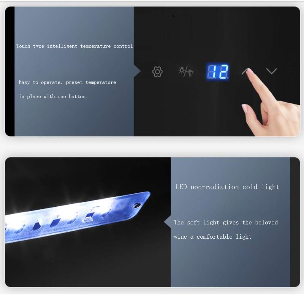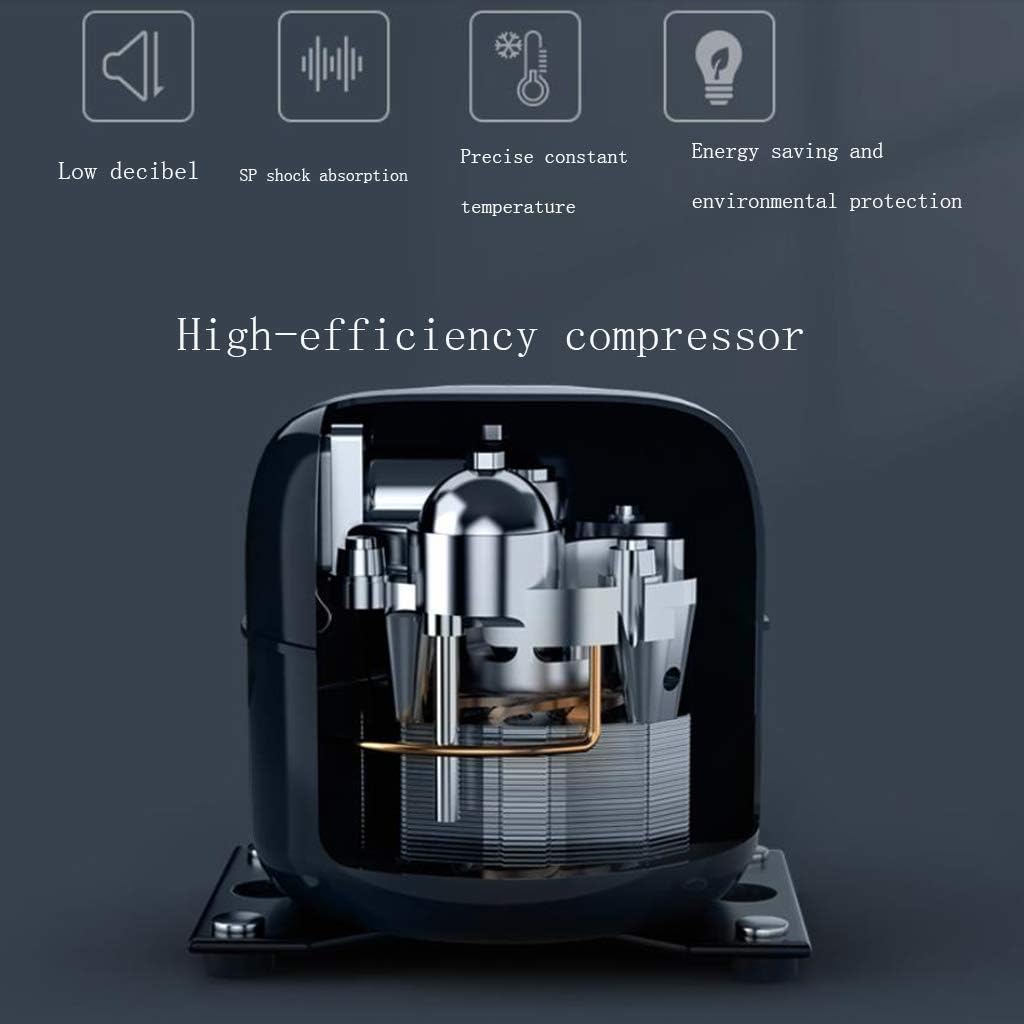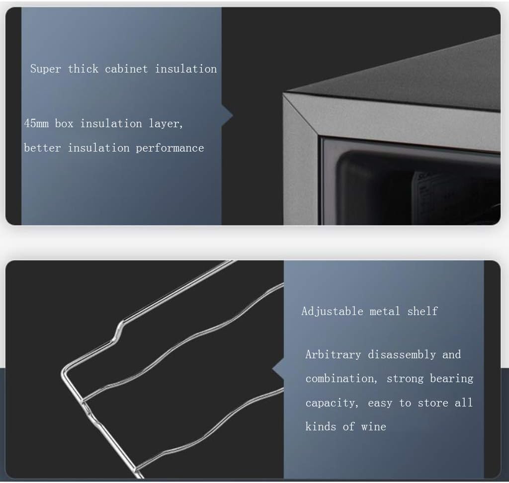 Product name: stainless steel shelf compressor refrigerated wine cabinet Product size: 430x450x830mm Power: 50W Voltage: 220V/50Hz (different voltage can be equipped with transformer) Net weight: 22.8kg Door material: transparent glass Shelf material: metal Shelf: 6 stainless steel shelves + 1 wine stop Temperature: 8-18℃ Light: blue LED light Features of the compressor wine cabinet: 1. Good cooling effect, stable performance 2. No frost and cooling, the whole area in the cabinet is cold 3. Intermittent and stable operation, long service life 4. Moderate humidity, protect the wine stopper