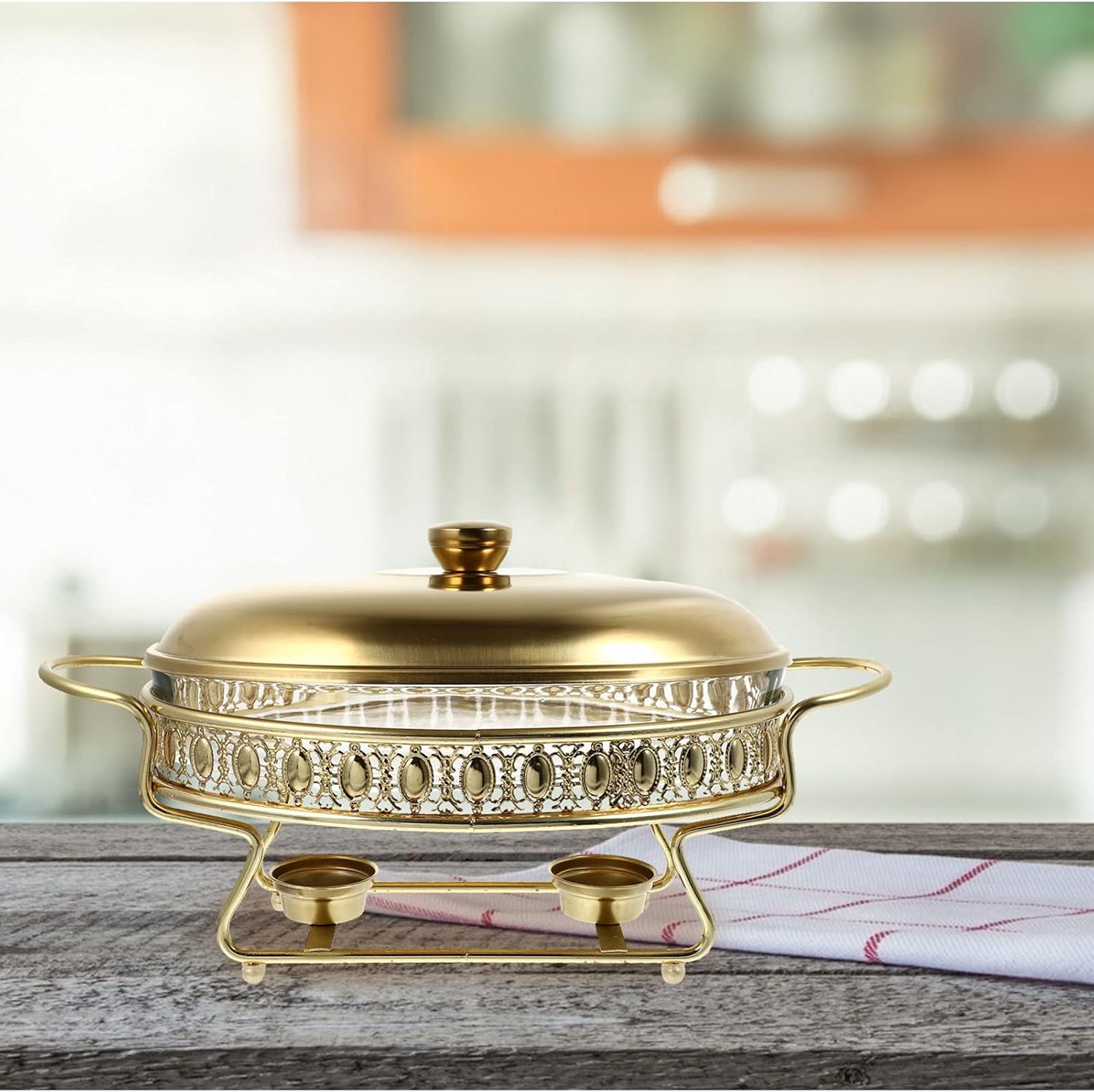 Description If you are looking for a professional and affordable restaurant buffet furnace, then your research is over here. That's because our product can satisfy your need. Excellent workmanship ensures it to be practical and durable for long time use. Features - Color: Gold - Material: Iron glass - Size: 30.7*21*13.6cm - Capacity: 1. 5L - Made of premium material, durable and practical for long term use. - Perfect for dish, snack, food, party and kitchen use. - This is a buffet furnace, which is made of good quality materials, durable for long time use. - The excellent manufacturing process enables it to have good performance. - A perfect housewarming gift for your friends, showing your love and care. Package Including 1 x Buffet Stove