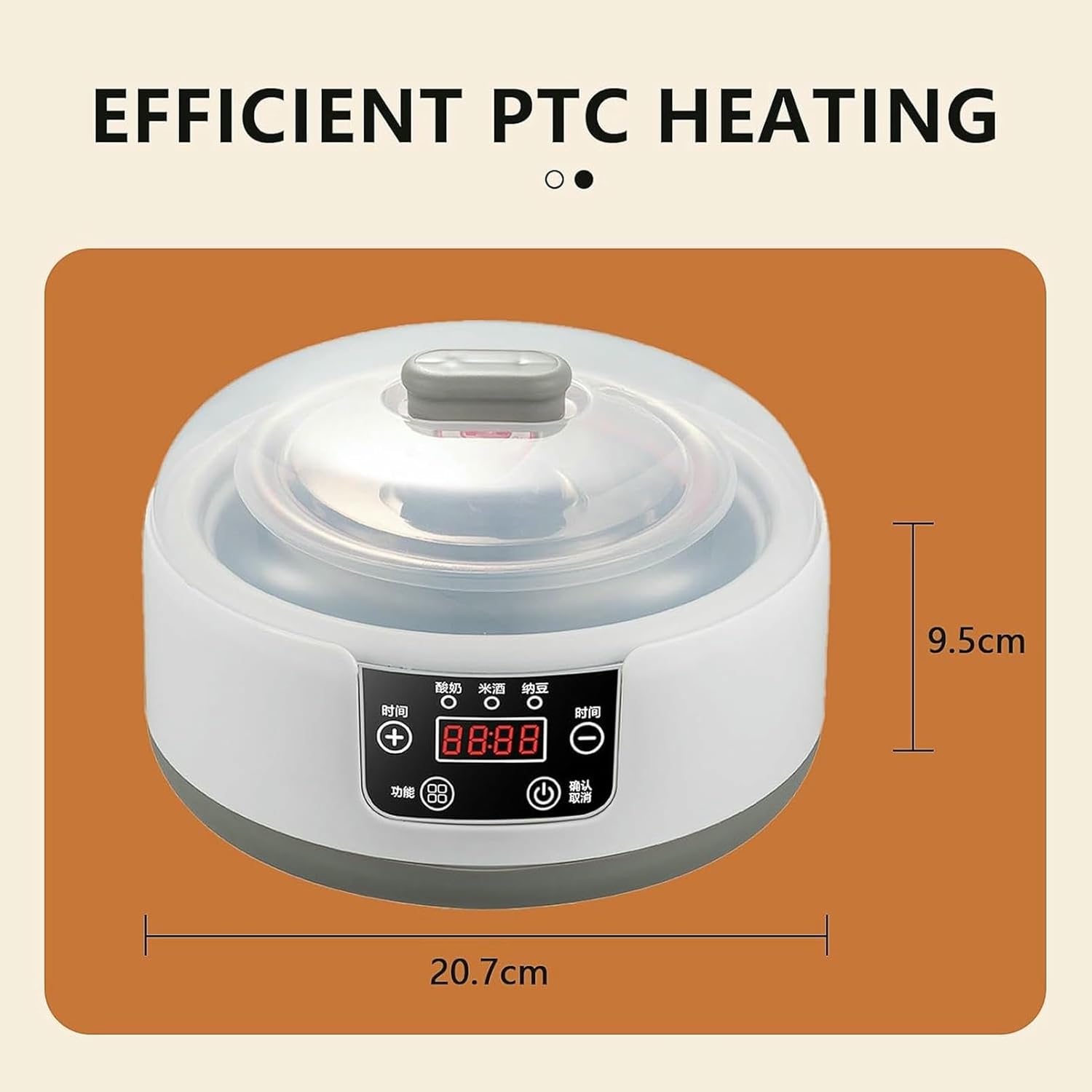 Product DescriptionProduct Description:Product Name: Yogurt Maker 36 HourProduct Advantages:Customize the fermentation temperature (68-122°F, 1-36 hours) with the digital LCD display for perfect yogurt texture and maximum probiotics. Ideal for the ultimate probiotic yogurt maker enthusiast.Can make probiotic yogurt, nachos or vegan food. Accuracy of ±0.5°C ensures live bacteria thrive and promotes gut health.Specification details:Inner Tank Material: Stainless SteelCapacity: 1.2LControl Mode: Microcomputer TypeDisplay: LCDRated Voltage: 110vRated Frequency: 50hzRated Power: 15wSize: 21.6*21.6*15cm (8.50*8.50*5.91in)Package content:1 Pcs * Yogurt Maker 36 Hour1 Pcs * Instruction Manual1 Pcs * Top CoverNote:1. Please note that the actual size is not shown in the photo, please refer to the size details description2. Please allow 1-3 mm difference due to manual measurement, thank you 3. Due to the difference between different monitors, the picture may not reflect the actual color of the product4. Due to different light and screen settings, the color of the product may be slightly different from the picture