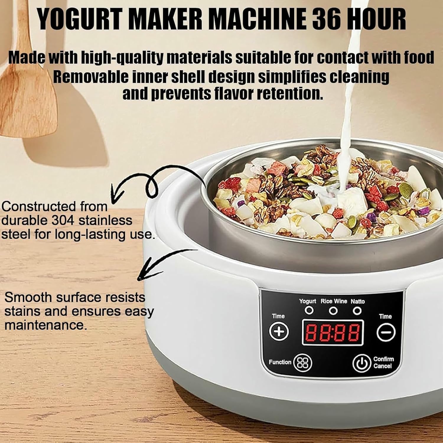 • 【Long-lasting fermentation】 The 36-hour yogurt maker cultivates L.reuteri strains for gut health – Ideal for keto & gluten-free diets needing high-potency probiotics
