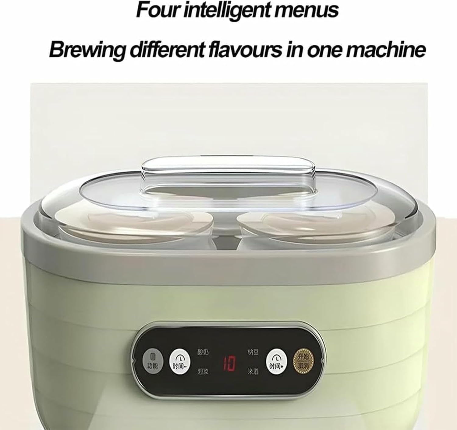 Want to enjoy healthy and delicious homemade yogurt and various delicacies? Our multifunctional yogurt maker is your perfect choice! Not only can you make yogurt, but you can also easily whip up Greek yogurt nachos, cheese, and even rice wine. Large capacity of 1750ml, meeting the needs of the whole family. The LED display allows for free timed temperature control, and the constant temperature setting ensures perfect flavor. 360° heat transfer technology, safe and efficient. Come and upgrade your kitchen experience and start a journey of healthy food!Specification:Product name:Yogurt Maker MachineProduct color: GreenInner liner material: Ceramic LinerRated power: 20WProduct capacity:500-1000mlControl method: High temperature protection, dry burning overheating protectionInner tank configuration: 500ml large cups*2 and 125ml small cups*6Product size :268x161x148mmProduct weight : 2400gScope of application: Fermented yogurt, enzymes, rice wine, dough, fruit vinegar, with heat preservation function.Status: NewNumber of units: 1Standard Product ID: 1Feed ID: 1Brand_name: GenericPacking list:1* Yogurt maker1* Transparent lid2* Large cup2* Large cup lid6* Small cup6* Small cup lid1* Split power cord1* Instruction manualNote:1.Because of lighting and screen variations, the item's color might slightly vary from the picture.2.Due to manual measurement, a 0.5-2 cm discrepancy is permissible.