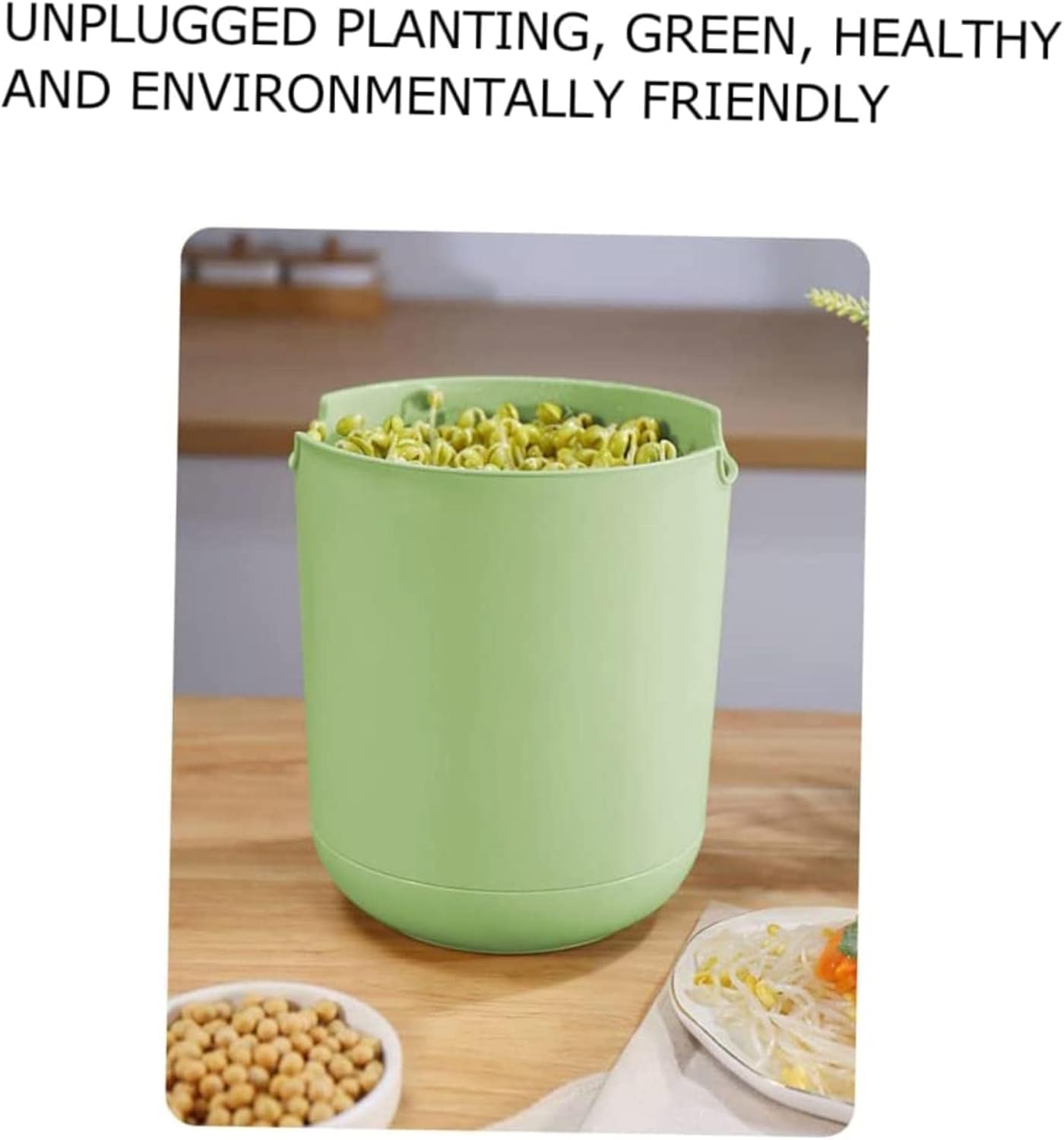 Note Please allow some errors due to manual measurement. SpecificationItem Type: Bean Sprouts MachineMaterial: PPAssembly Size: Approx. 18 x 18 x 18cm/7.1 x 7.1 x 7.1inGross Weight: Approx. 840g/29.6ozScope of Application: Making Bean Sprouts, Yogurt, Natto, Rice Wine, Etc. Suitable for Germination of Soybeans, Mung Beans, Black Beans, Red Beans, Radishes, Alfalfa Seeds, Peas, Corn, Wheatgrass, Barley, Chickpeas, Cauliflower, Lentils, Any Seeds and Other CropsPackageList1 x Bean Sprouts Machine 1 x Chassis 1 x Cover 1 x Filter Features1、HIGH QUALITY MATERIAL: The bean sprout machine is made of food grade PP material, and has no peculiar smell.2、EASY TO CLEAN: The bean sprouts growing machine is easy to operate, easy to clean, no professional skills required, and very practical.3、LARGE CAPACITY: The fully automatic bean sprouts maker adopts a large capacity design, which can make more bean sprouts at one time.4、SCOPE OF APPLICATION: Seed sprouter can make bean sprouts, yogurt, natto, rice wine, etc. You can make bean sprouts all year round.5、MULTIPURPOSE: The seed sprouter is suitable for the germination of any crops such as seeds, and can make the machine use for seed germination to transplant into the soil for growth.