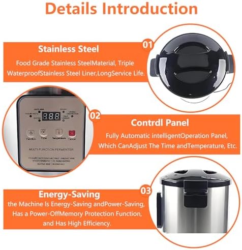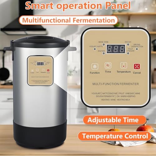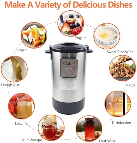 Experience the joy of homemade fermented foods with our advanced fermenter, designed to replicate the traditional hand fermentation process. This innovative appliance transforms simple ingredients into delicious yogurt, rice wine, and other fermented delights, enriching your meals with active nutrients and flavors that are sure to impress. Crafted from high-quality, food-grade stainless steel, our fermenter boasts a robust triple waterproof design for enhanced durability. With a generous capacity of 2.64/3.9 gallons (12/18 liters), it's perfect for both home kitchens and commercial settings, ensuring you have enough to satisfy your culinary needs. Key Features: - **LCD Display**: The intuitive display allows for easy control of time and temperature, making the fermentation process straightforward and user-friendly. - **Large Capacity**: Create up to 22/34 pounds of yogurt in a single batch, ideal for families or gatherings. - **Smart Power Protection**: Our power-off memory feature ensures that if there’s an interruption in power, the machine will pause and resume automatically, preserving your fermentation process. - **Versatile Applications**: Perfect for a variety of fermentation projects, including yogurt, enzymes, rice wine, dough, and fruit vinegar, all while maintaining optimal heat preservation. Specifications: - **Material**: Stainless Steel - **Rated Voltage**: 110V/220V - **Rated Frequency**: 50-60HZ - **Rated Power**: 90-110W - **Product Dimensions**: 33 x 26 x 51 cm / 36.5 x 30 x 52.5 cm - **Net Weight**: 5kg / 6kg Package Includes: - 1 × Multifunctional Fermentation Machine - 1 × User Manual Customer Satisfaction: We are committed to providing excellent service. If you have any questions or need assistance, please contact us via email, and we will respond within 24 hours to ensure your complete satisfaction. Unlock the potential of homemade fermentation and elevate your culinary creations with our reliable and efficient fermenter!