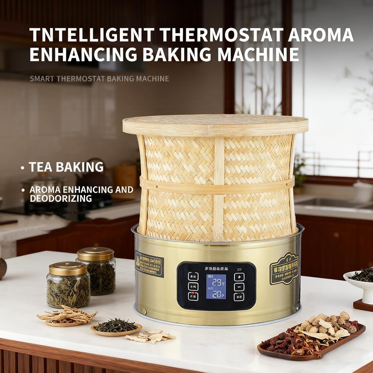 Electric Tea Dehydrator, 400W Stainless Steel Food Drying Machine with Bamboo Cage, 30-150℃ Temperature Control, Timer Shutdown, LED Display, for Scented Tea Vegetables and Dried MeatApplicationTrusted by tea enthusiasts, DIY hobbyists, and professionals. Ideal as a Small Tea Drying Machine or multipurpose Electric Food Dehydrator for diverse drying applicationsProduct Operation Steps:1. After the machine has been checked and everything is normal, connect the power supply and wait for the machine to start.2. Place the products to be baked and dried evenly on the tray inside the bamboo steamer.3. Bake for the required time, setting the duration and adjusting the temperature, and then set the shutdown time.Specifications:Product Name: Electric Tea DehydratorColors: Black, Gold, Silver, RedMaterial: Stainless Steel, BambooPower: 400WVoltage: 110V, 220-240VTea Load Capacity: 250-500gTemperature Control Range: 30-150℃Overall Dimensions: 22×22×25cm/8.66×8.66×9.84inBamboo Cage Dimensions: 20×20×15cm/7.87×7.87×5.91inBaking Tray Diameter: 17cm/6.69inPackaging Dimensions: 23×23×26cm/9.06×9.06×10.24inPackaging Weight: 1.8kg/3.97lbsPackage Included:1 × Electric Tea Dehydrator1 × Remote ControlNotes:1. Please allow the slight color difference caused by the shooting light and 1-3cm error due to manual measurement.2. If you have any questions please contact me and I will reply you within 24 hours.