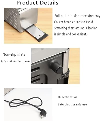 Experience the ultimate toasting solution with our versatile commercial toaster, designed to meet the needs of both home and professional kitchens. This toaster features convenient functions such as cancel, reheat, and defrost, making it perfect for busy mornings or quick snacks. The adjustable width slots accommodate various bread types, ensuring perfectly even toasting regardless of thickness. Customize your toasting experience with the adjustable temperature settings, allowing you to achieve your desired level of crispness. The removable crumb tray ensures effortless cleaning, while the integrated power cord storage keeps your countertop organized and clutter-free. Whether you're preparing breakfast for family or serving customers in a café, this commercial toaster enhances your cooking efficiency and delivers consistent results. With a rated voltage of 220V/50Hz and a powerful 2250W output, it’s designed for high performance and durability. Safety is a priority; please remember that the toaster will become hot during use. Avoid touching the slots to prevent burns. For maintenance, simply wipe the exterior with a damp cloth—do not immerse in water. Elevate your toasting experience with our reliable and efficient commercial toaster, the perfect addition to any kitchen setup. (Characters: 1478)