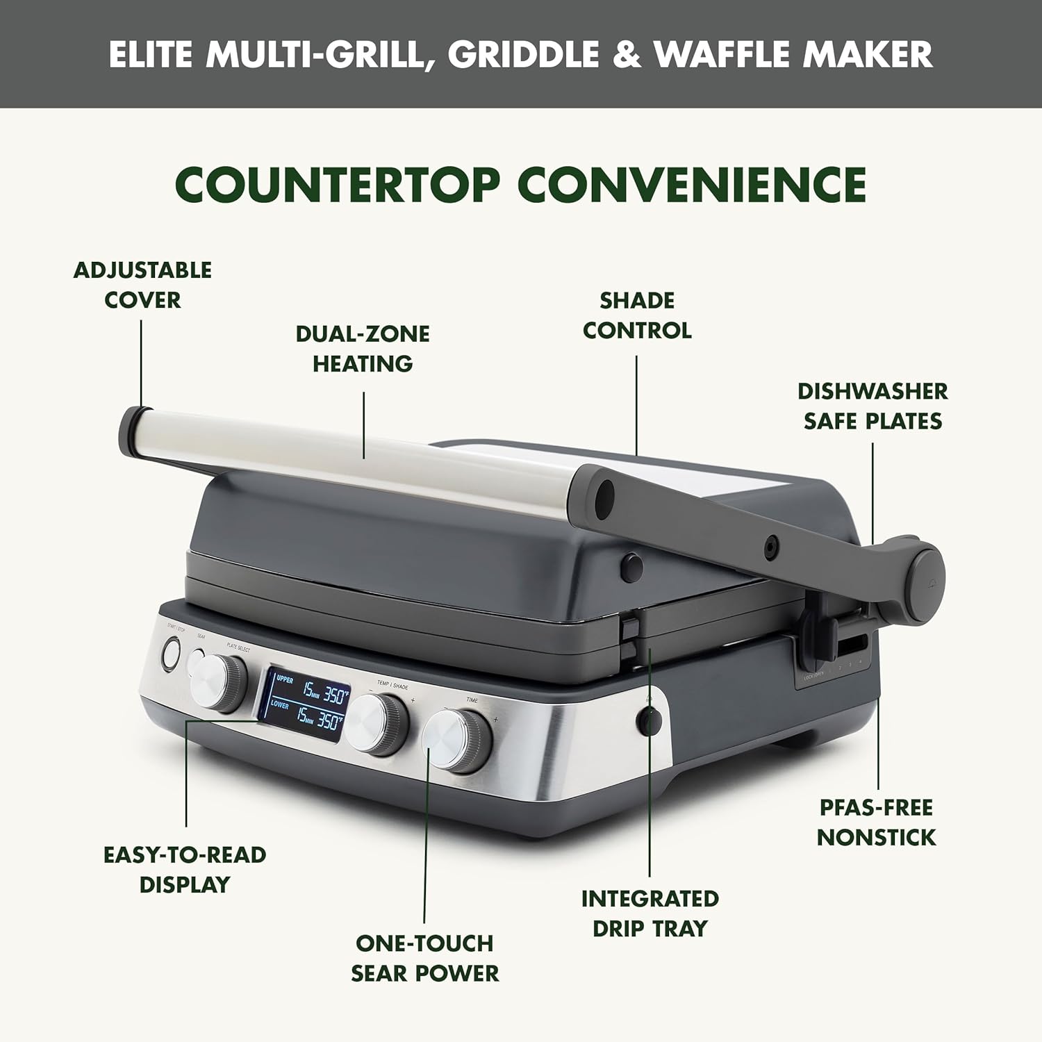 Discover a world of flavor on your counter with the Multi Grill, Griddle & Waffle Maker. The three plate options offer an endless array of possibilities—from classic paninis to perfect Belgian waffles, you’ll always have the right plate ready. The independent temperature controls let you dial in your setting and the waffle plate setting even lets you control the shade of your waffles. And cleaning up is simple thanks to Thermolon™ Volt, GreenPan’s pioneering ceramic nonstick coating made specially for kitchen appliances.