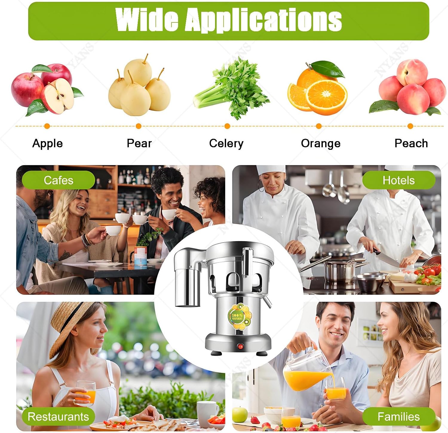 In the hot summer, having a homemade healthy and delicious juice is very comfortable and refreshing. But now many juicers on the market crudely grind fruits and vegetables to achieve the purpose of juice extraction, and the drinks made in this way also contain a lot of fruit re-sidue that greatly affect the taste. But our juicer can automatically separate fruit juice and re-sidue, allowing you to enjoy purer and more delicious juice while making it easier to clean! This kind of upgrade is indispensable to you, it is the key to starting a happy summer!Specifications-Model: A3000Power: 370wSpeed: 2800r/minJuice volume: 80-100kg/hrDischarge port: Round slag outlet,without slag receiving bucketFeed port: depth 12cmWeight:12kgPacking size: 25*40*35cm-Model: B3000Power: 370wSpeed: 2800r/minJuice volume: 80-100kg/hrDischarge port: 12*9cmFeed port: depth 12cmWeight:13kgPacking size: 25*37*36cm-Model: A2000Power: 550wSpeed: 2800r/minJuice volume: 100-120kg/hrDischarge port: Round slag outlet,without slag receiving bucketFeed port: depth 13cmWeight:19kgPacking size: 44*36*52cm-Model: B2000Power: 550wSpeed: 2800r/minJuice volume: 100-120kg/hrDischarge port: 14*9cmFeed port: depth 13cmWeight: 20kgPacking size: 55*36*52cmPackage Included1*Juicer1*Push Rod1*English ManualAll Accessories for Assembly【After Sales Service】 If you have any questions or suggestions about our products, please send us an email for feedback, we will reply you within 24 hours, and you will get friendly after-sales service.