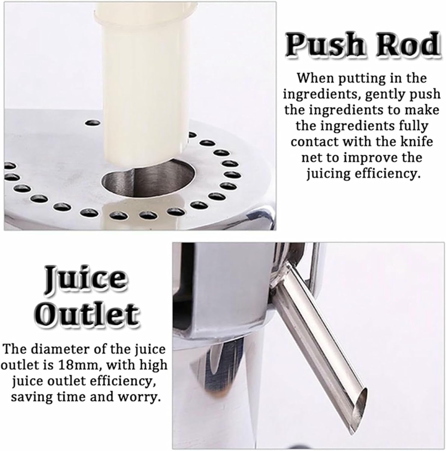 ? Juicer Machine for Fruit & Vegetables - Centrifugal Juice Maker 550W, 3 inch Wide Feeding Chute for Extracting Juices & Detachable Pulp Container - Easy Cleaning.? Specifications:- Name: Automatic Centrifugal Juicer- Material: Stainless steel material- Voltage: 220V- Frequency: 50HZ- Power: 550W- Speed: 2800r/min- Juice Volume: 100-120kg/hr- Size: Please refer to the picture- Weight: 19kg? Features:1. Separation of fruit and vegetable juice from fruit and vegetable residue;2. Juice outlets in different positions can be adjusted;3. Made of stainless steel for contact with food, no rust, easy to clean.4. Separable parts design, easy to clean and store.5. The juicer has a built-in high-power motor and a stainless steel juicer net design, with a high juice output rate.