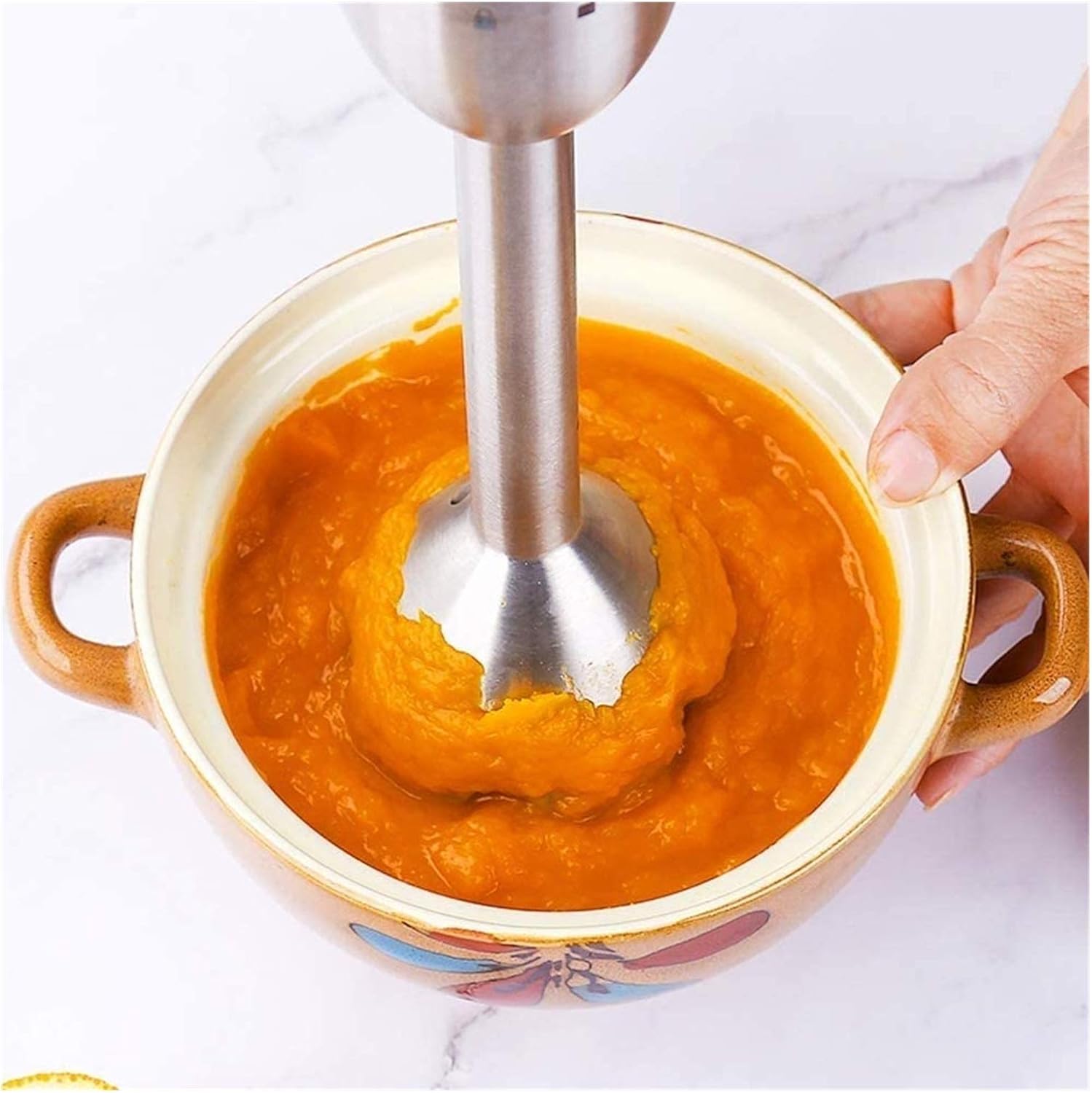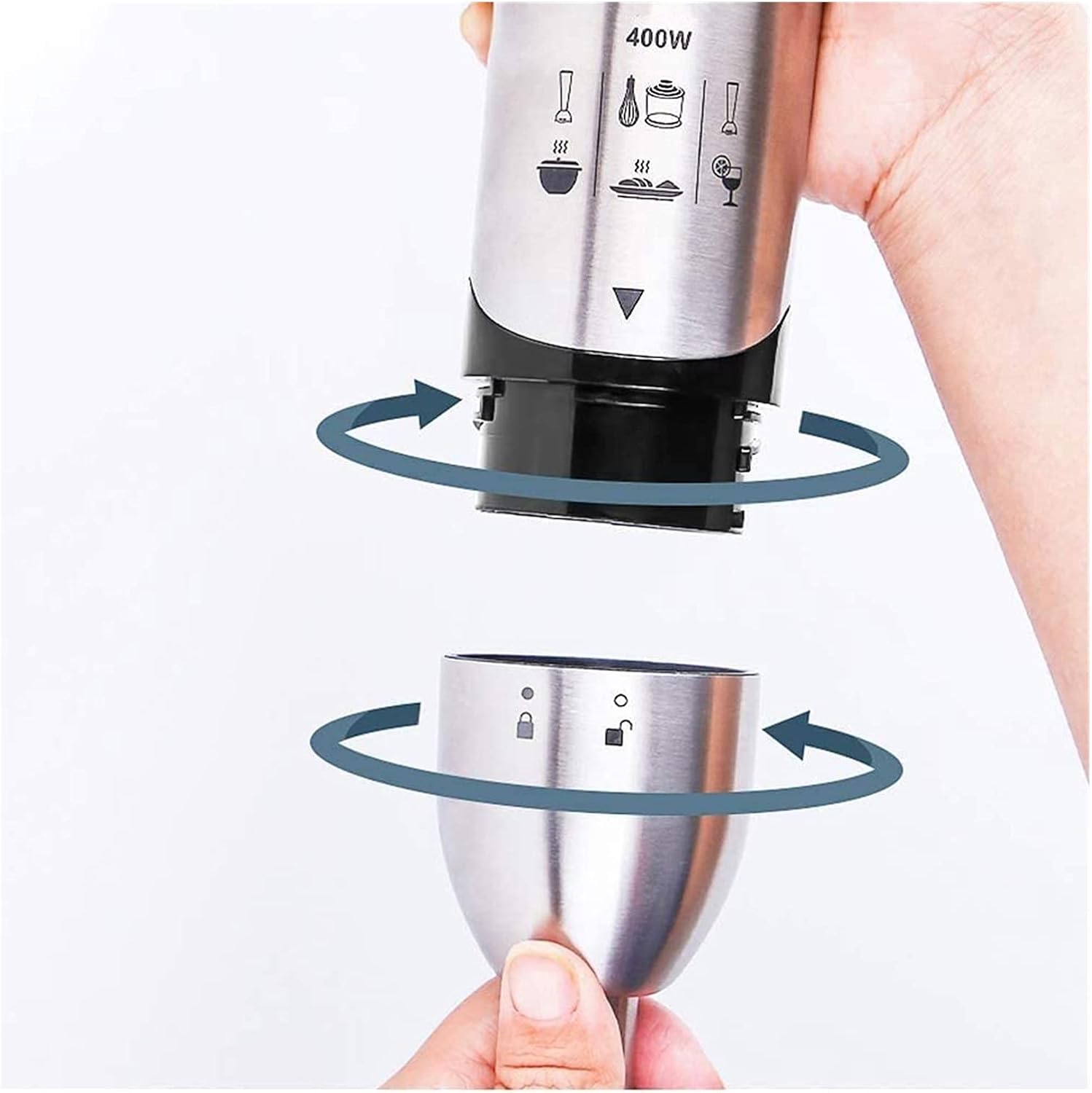 Product name: Multi-function cooking stick Rated voltage/frequency: 220V/50Hz Rated power: 400W Body material: 304 stainless steel Color:balck Rated capacity: 500ml juice cup 500ml minced meat cup 500ml Includes: 1* Hand Blender main body; 1*Stainless steel mixing stick; 1*Stainless steel egg whisk; 1*500 ml food chopper with stainless steel blades; 1*500ml beaker with cup measurements; 1*500ml grinding machine Although the order is over, our service is not over yet. Yours is definitely the biggest motivation for me. If you have any questions, please feel free to contact us, we will serve you wholeheartedly.