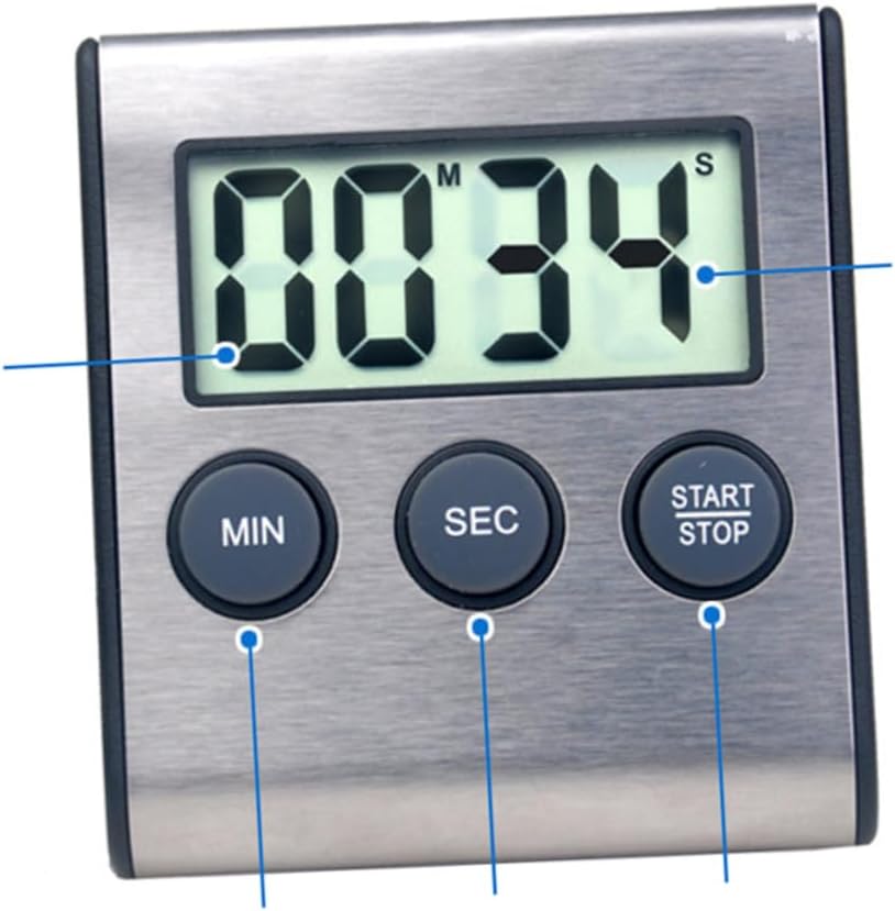 Package List 3 x Digital Kitchen Timer Features - Material: ABS and stainless steel Digital Timer. - Size: 7.9 x 4.2 x 1cm Stainless Steel Timer. Warm Tip: Dear buyer, due to lighting effect, monitor's brightness, manual measurement, etc., there could be some slight differences in the color and size between the photo and the actual item. Sincerely hope that you can understand! Thank you! Digital Kitchen Timer - Large digital screen: This kitchen timer have is bigger and clearer LCD screen, simple to read the time and numbers effortlessly, for those without the eyesight. - Counts up and down: The digital kitchen timer maximum 99 minutes 59 seconds. - Kitchen timer can be easily read with the large digits. Digital timer loud and clear but not deafening to be heard from another room. According to user needs, we Professional Minute Second Timer. - Easy to store and take on the go with a simple lightweight for cooking Cooking Timer. - timer for kitchen, gym workout, exam rooms, BBQ grilling, , and hair salon. - ColorDark GreyGoods InformationStainless Steel Timer The digital timer is for cooking(egg timer), kitchen and dining, homework, , gym work, sports, games and classroom timer activities.Digital Kitchen Timer The maximum timing setting is 99 minutes 59 seconds.Cooking Timer And the timer can be used for countdown timer and minute timer, this can also be use as a stopwatch
