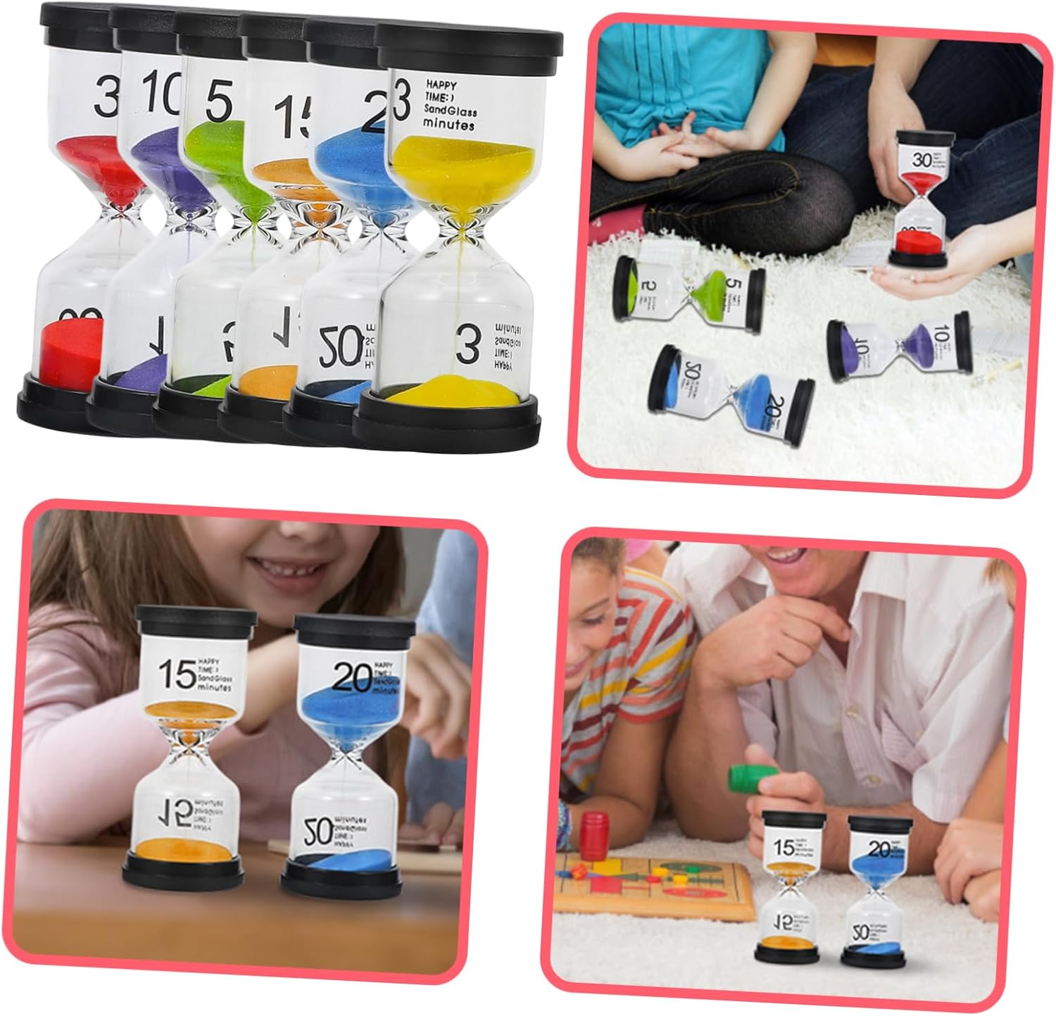 Package Include 1 x Hourglass Timer(3 minutes) 1 x Hourglass Timer(5 minutes) 1 x Hourglass Timer(10 minutes) 1 x Hourglass Timer(15 minutes) 1 x Hourglass Timer(20 minutes) 1 x Hourglass Timer(30 minutes) Characteristics -Size:9.70X4.30X4.30cm/3.81X1.69X1.69in creative sand timer -Color:Multi sand clock decor -Material:ABS, glass household timer - This timer is perfect for managing time during showers, cooking, and workouts, and so on home decoration accessory. - Also can be a good housewarming present choice for your friends, they will like it. Sand Timer Decorative - The material is safe and light, which is wear resistance and practical for the lasting time use sand timer decor. - Multipurpose hourglass, not only can be decorations, but also can be used timer sand clock home decoration. - craftsmanship, simple molding, beautiful appearance. It will give you a good experience sand timer decoration.Goods Informationsand accessory Are you looking for convenient timers for home use? These timers will be an .household timer They are sand clocks.hour glass with sand Suitable for timekeeping and also pretty and practical decorations, and will bring much convenience to your life