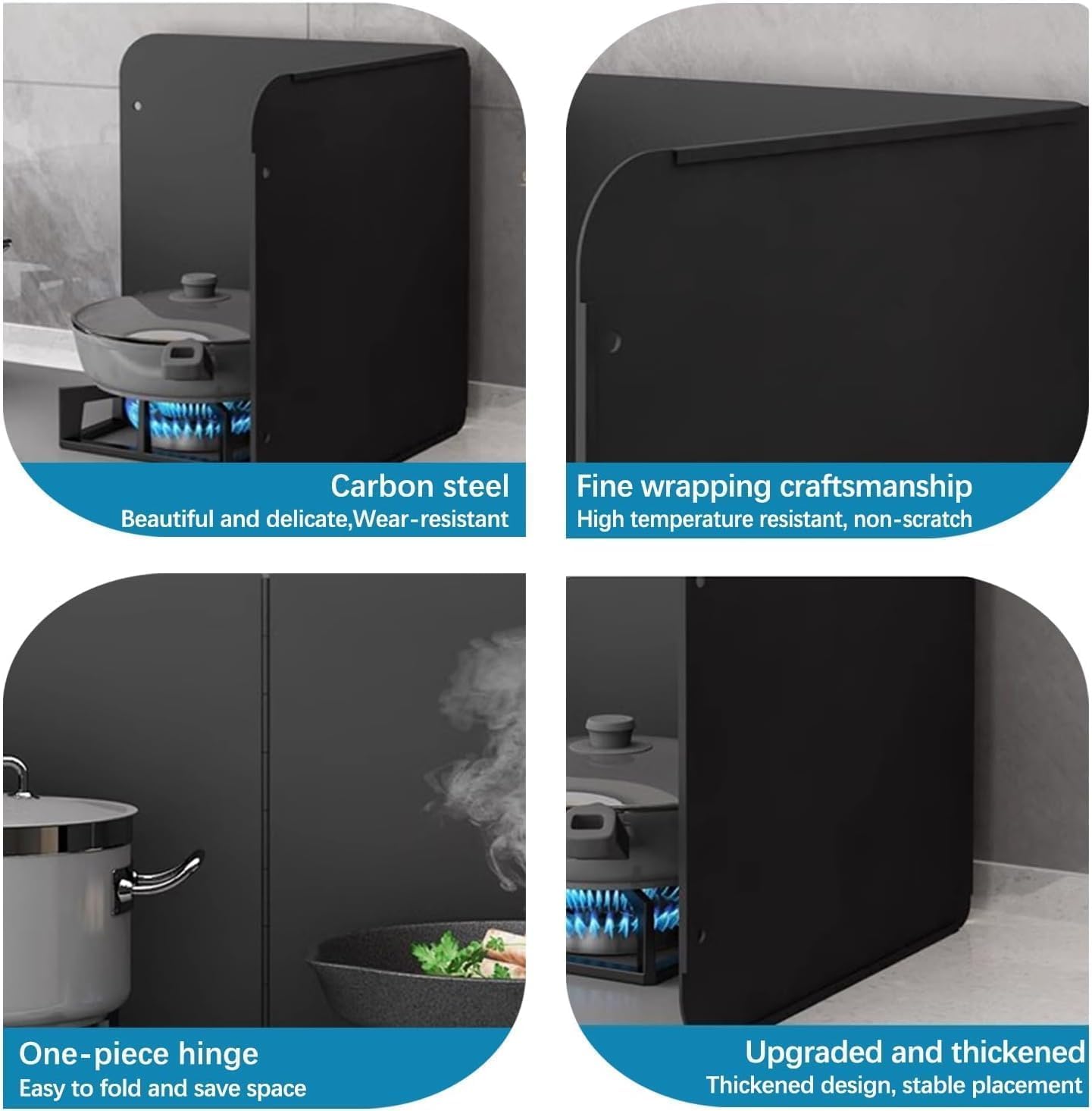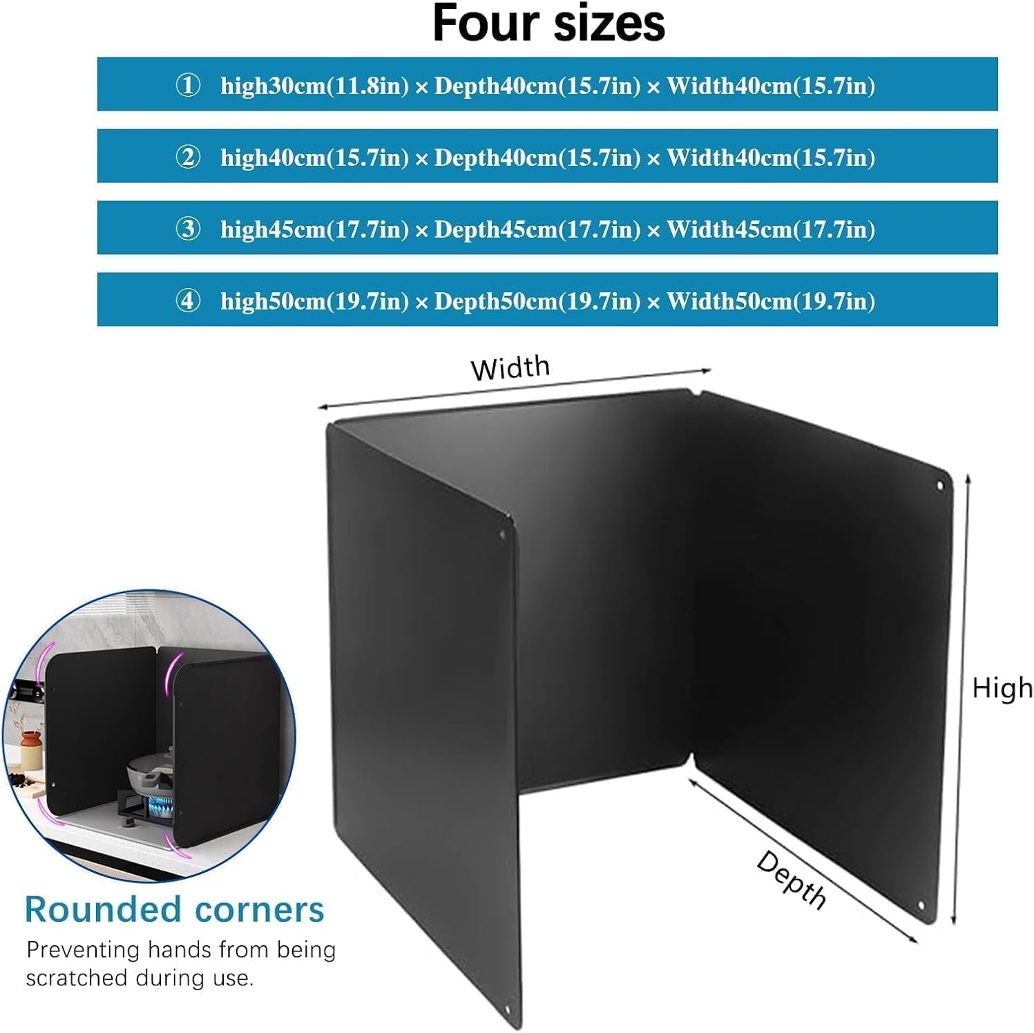 Prevent Oil Splash: the splatter guards for frying can prevent the stove and its surroundings from oil or food spills when cooking in the kitchen; They are well insulated to prevent surrounding plastics, spices, cans, etc. from being heated or deformed; You can also use them as food wash splash guardsName: Hot-dip galvanized oil barrierThickness: 0.6mmMaterial: Selected carbon steelStyle: three-piece foldDimensions: 30cm highColor: blackFeatures: Suitable for users of various house types, safe and hygienic▶ Notes:★About size---Due to different measurement methods, there may be an error of 1~3cm, please understand!★About service---If you have any questions, please feel free to contact us, we will reply you within 24 hours.