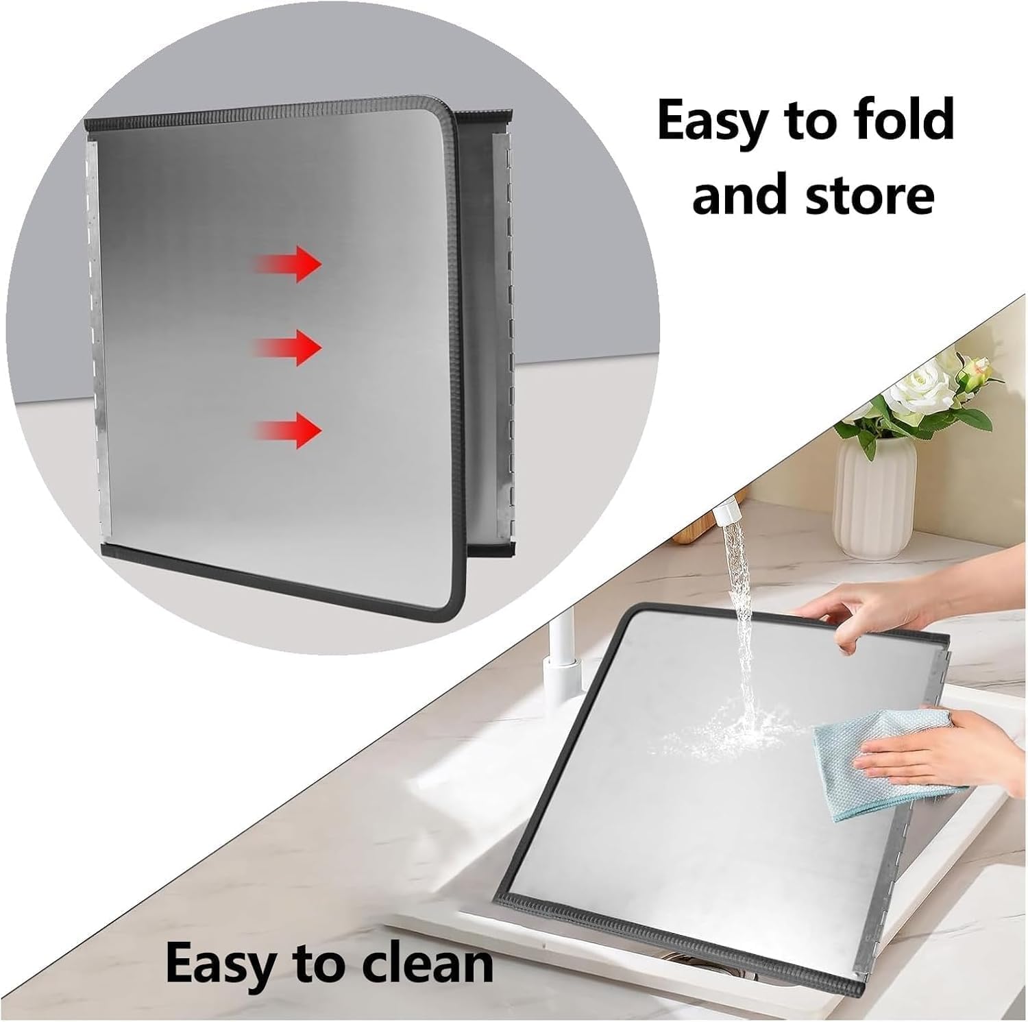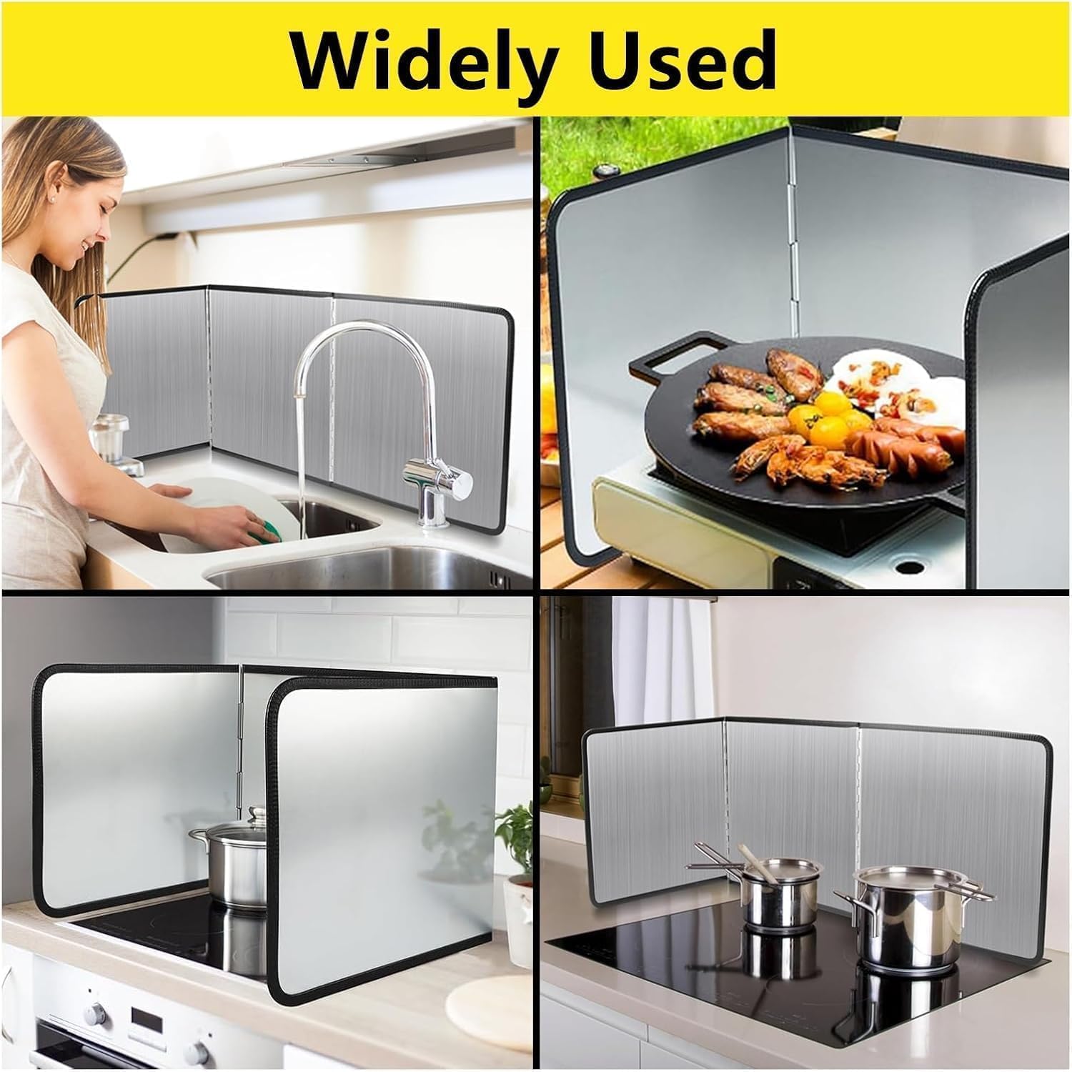 Prevent Oil Splash: the splatter guards for frying can prevent the stove and its surroundings from oil or food spills when cooking in the kitchen; They are well insulated to prevent surrounding plastics, spices, cans, etc. from being heated or deformed; You can also use them as food wash splash guardsName: Stainless steel oil baffleMaterial: thickened stainless steelStyle: three-piece foldThree-piece fold size: ①30cm×40cm×40cm, ②40cm×40cm×40cm,③45cm×45cm×45cm, ④50cm×50cm×50cmColor: silverFeatures: Suitable for users of various house types, safe and hygienic▶ Notes:★About size---Due to different measurement methods, there may be an error of 1~3cm, please understand!★About service---If you have any questions, please feel free to contact us, we will reply you within 24 hours.