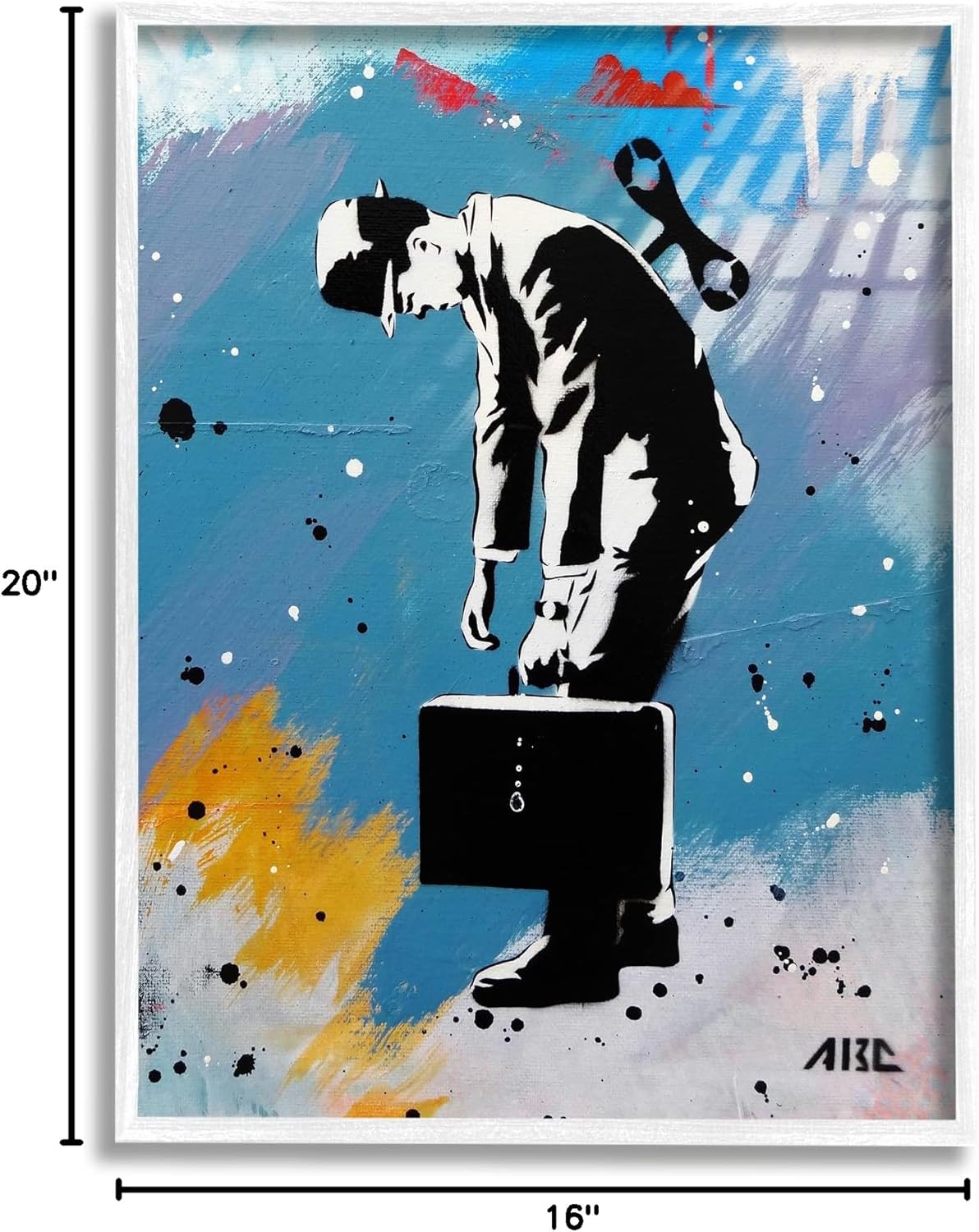 Stupell Industries Street Style Wind Up Toy Businessman Modern Splatter, Design by AbcArtAttack, Blue, 16 x 20