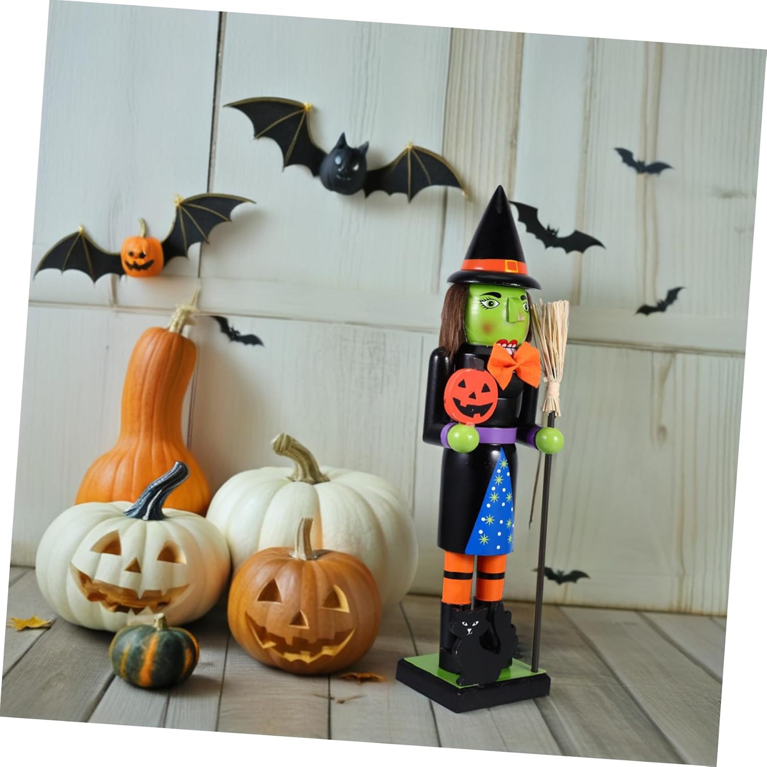 Package Include 1 x Halloween Nutcracker Features -Color:Multi witch ornament -Handpainted and unique: each nutcracker is handpainted and decorated, creating a unique appearance that adds a special touch to your halloween decor wooden witch nutcracker -Size: 39.00X9.00X8.00cm/15.33X3.54X3.14in jack-o-lantern nutcracker decor -Material:Wood wooden jack-o-lantern nutcracker -Ideal for halloween parties: this halloweenthemed nutcracker statue is suitable for holiday parties, bringing a spooky yet charming vibe to your celebrations jack-o-lantern nutcracker -Versatile decoration: the nutcracker can be placed on various surfaces such as windowsills, mantelpieces, or kitchen tables, adding a festive touch to any room nutcracker decorations - wooden construction: made from wood, our decorative nutcracker is not only but also extremely , ensuring use halloween collection -Enhance your home: use our beautifully designed nutcracker to bring the halloween spirit into your home, creating a festive and spooky ambiance jack-o-lantern ornamentGoods Informationnovelty nutcracker figure Ideal for indoor settings, it can be used to decorate living rooms, entryways, or dining areas, adding a playful and spooky touch to your Halloween festivities.halloween ornament Its whimsical design, featuring a pumpkin head and classic nutcracker attire, makes it a standout piece.witch ornament Enhance your Halloween decorations with this charming pumpkin nutcracker soldier