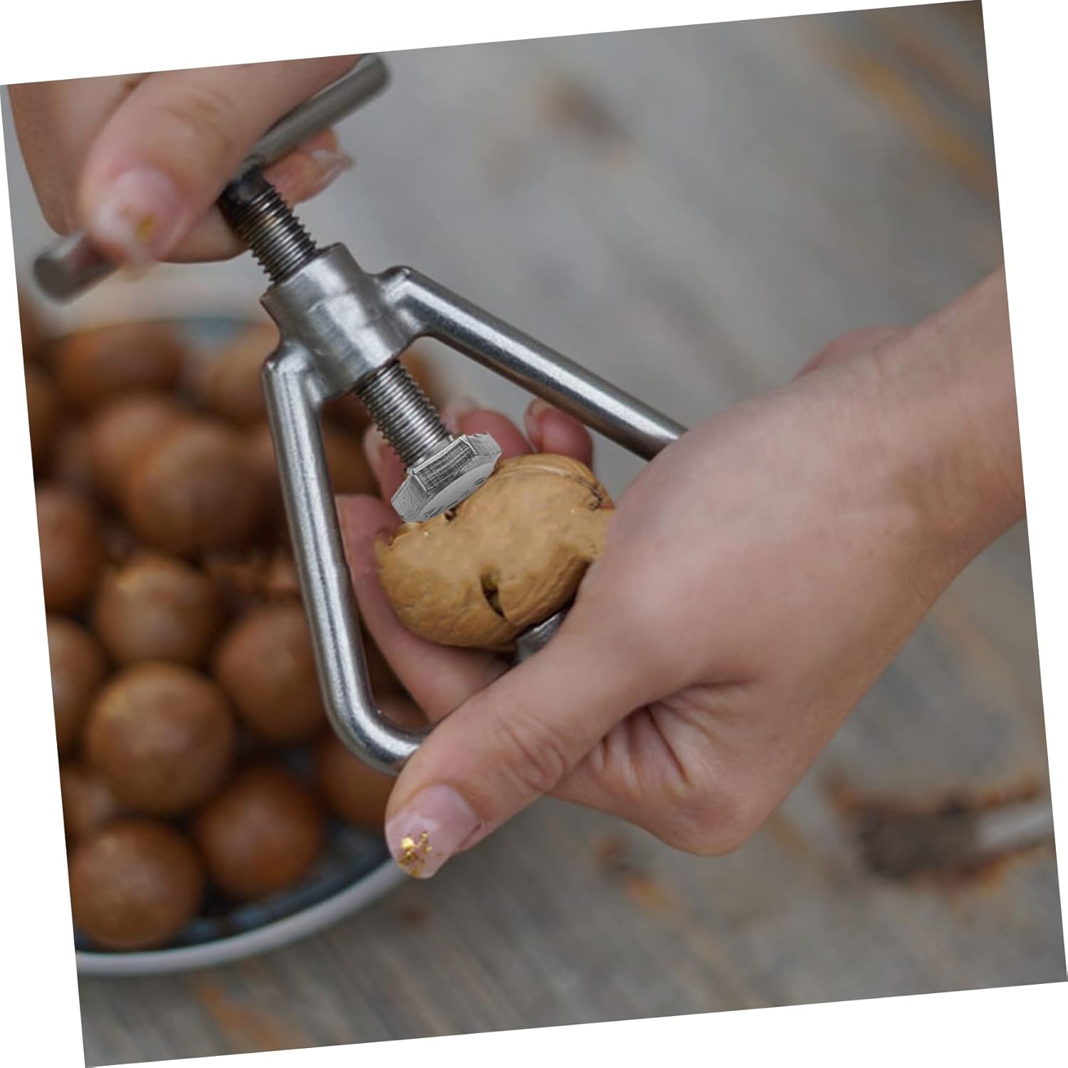 Package Include 5 x walnut opener Features - The concave pressure groove can fix the nuts and prevent the shell from falling off Nutcracker Tool. - Put the nuts into suitable pressure grooves, hold the handle knob immediately, and even the hard nuts can be easily clamped nut tools. - Designed for cracking open all nuts like pecan, walnut, and almond and works great on hard shells nuts pecan nut. - Size: 9.80X9.00X0.70cm/3.85X3.54X0 walnut cutter tool. - The material is safe and durable, which is wear resistance and practical for the long time use Shell Opening Tool. - Practical and convenient, and strong in functionality. This is widely for walnuts, nuts, chestnuts, macadamia and more walnut clip. - Color: Silver Dried Fruit Pick - Material: Stainless steel pecans openerGoods DescriptionDried Fruit Clip Convenient kitchen accessory for you.metal nut opener Stainless Steel Nutcracker is a great gadget for you to crack open your favorite nuts, pecans, almonds Macadamia, hazelnuts and more.walnut pecan plier Made of premium material for durable and practical use