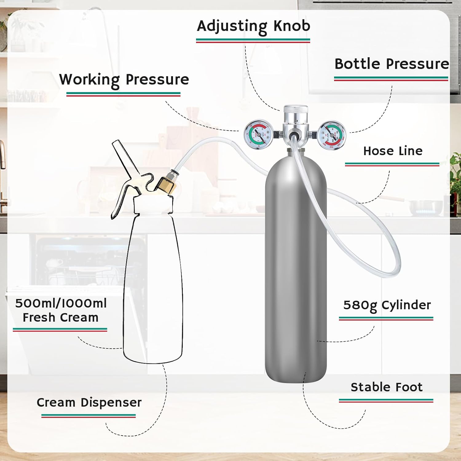 Features: The whipped cream pressure regulator valve is practical, which helps you to regulate the precise amount of gas released in one go, bringing you a pleasant party. If you want soft, thick, flowing, firm foam, the pressure regulating valve can help you. Specifications: Material: aluminum and copper Color: as the picture shown Size: as the picture shown Package includes: 1 x Pressure regulator valve with hose line and screw adapter Notes: Manual measurement, please allow slight errors on size. The color may exist a slight difference due to different screen displays.