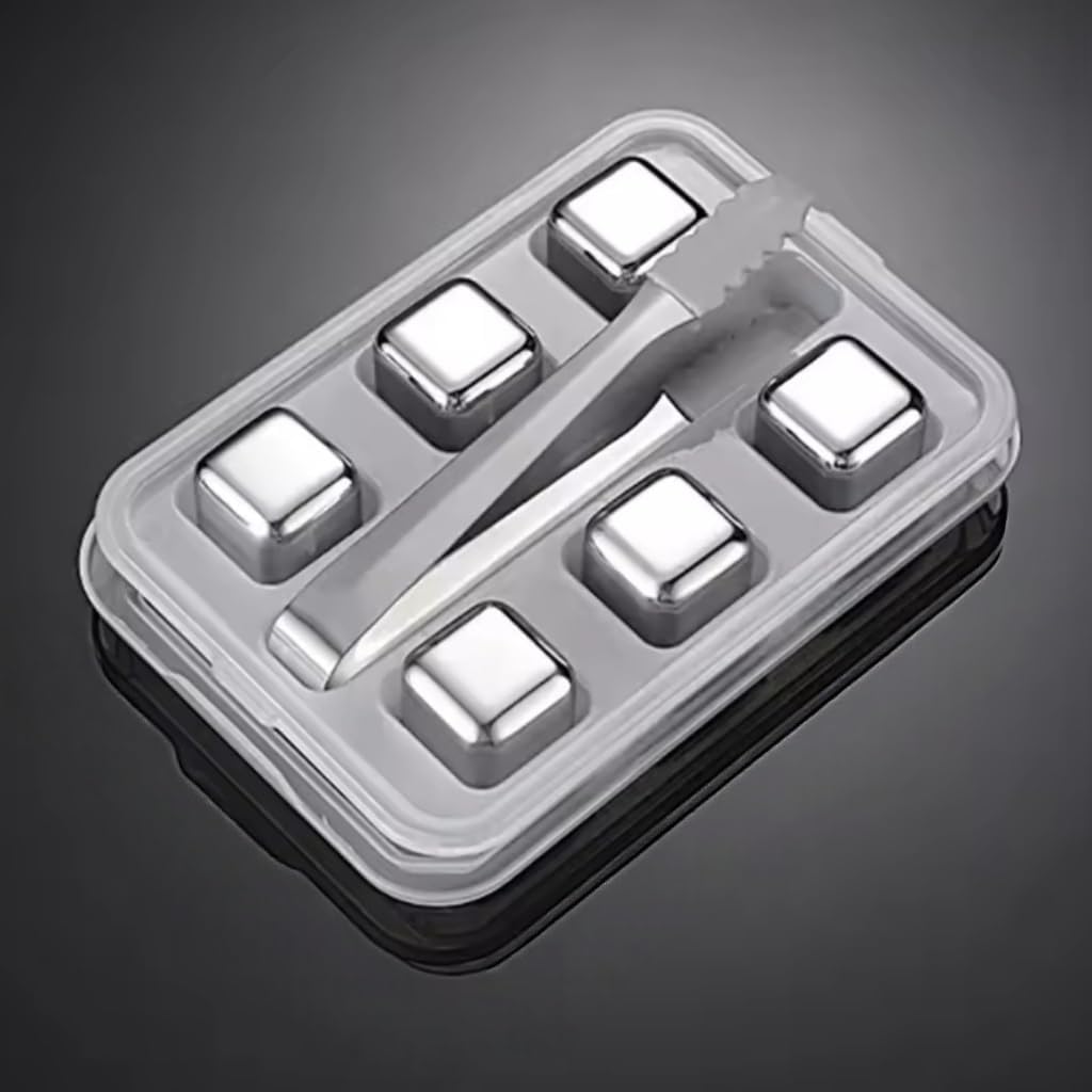 -Our durable and food safe stainless steel ice cubes are corrosion-resistant and suitable for all types of whiskey and wine, helping to extend the refrigeration time of beverages. -Undiluted ice cubes - These reusable ice cubes are made of food grade 18/8 (304) stainless steel material, which can keep drinks cool and flavorful without diluting, rusting, or corroding. -Quick cooling beverage - Simply wet the ice cubes slightly before placing them in the refrigerator. Freeze for 1-2 hours and you can depart. Enjoy 3 to 4 hours of frozen cubes for maximum enjoyment. -Easy to clean and store - includes a plastic storage tray for keeping whiskey stones clean and organizing them during the freezing process. Simply clean after use, very convenient. -Gift Box - Exquisite Gift for Spirits Drinkers.==========Material : Stainless steelBuckets, Coolers u0026 Holders Type : Wine Coolers & ChillersOrigin : Mainland China