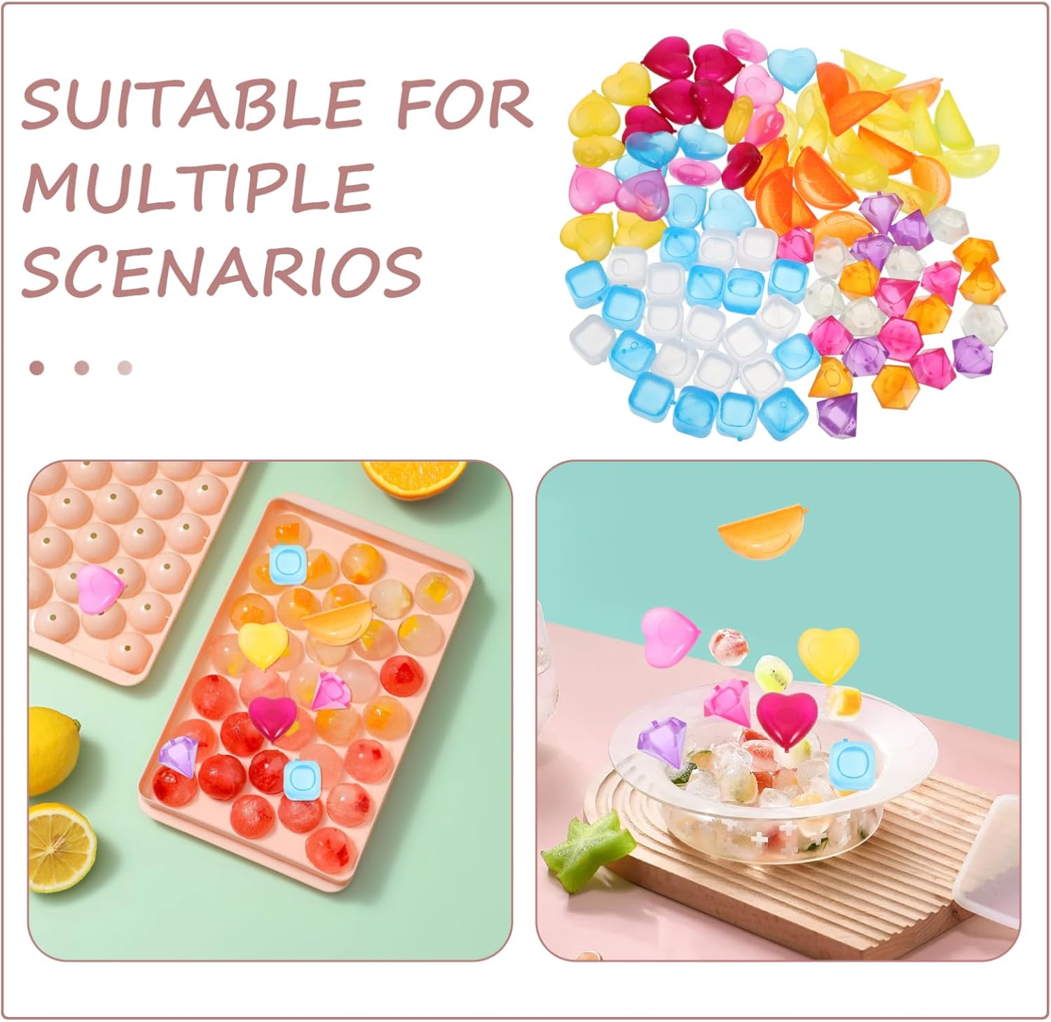 Package List 96 x Plastic Ice Cubes Characteristics -Size:5.20X2.70X2.30cm/2.04X1.06X0.90in eyeball ice cubes -Wide application: for a variety of uses, including making cold drinks, packing lunch bags, and keeping coolers chilled, these ice cubes are highly versatile ice bin with lid -Elegant look: the fake adds a touch of sophistication to your beverages, enhancing their overall appearance eyeball ice cubes reusable -Fast freezing: these ice cubes freeze quickly, allowing you to enjoy cold drinks and chilled food without waiting for long periods clear ice cube -Reusable and : crafted from pp material, these ice cubes can be reused multiple times, offering a sustainable cooling option fake ice -Material:Plastic large reusable ice cubes -Size:3.30X3.30X3.30cm/1.30X1.30X1.30in fale ice -Color:Assorted Color plastic ice cubes -Size:2.60X2.60X2.60cm/1.02X1.02X1.02in ice cube trays plastic - material: made from pp material, these ice cubes are to use with any food or drink, ensuring your safety fake ice cubes -Size:3.90X3.90X1.60cm/1.53X1.53X0.63in ice cube binGoods Descriptionclear ice trays They offer a to traditional ice cubes, ensuring your drinks without getting watered down.fake ice cubes for use in lunch bags, coolers, and at home, these fake ice cubes can be reused multiple times.fake ice cube These 96pcs reusable ice cubes are designed to provide quick and efficient cooling for your drinks