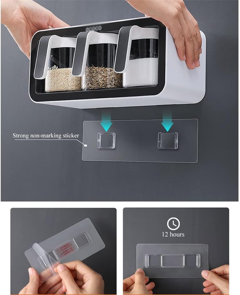Spice Rack Wall Mounted Storage Box Salt Shaker Seasoning Box With Spoon Kitchen Supplies Storage Set