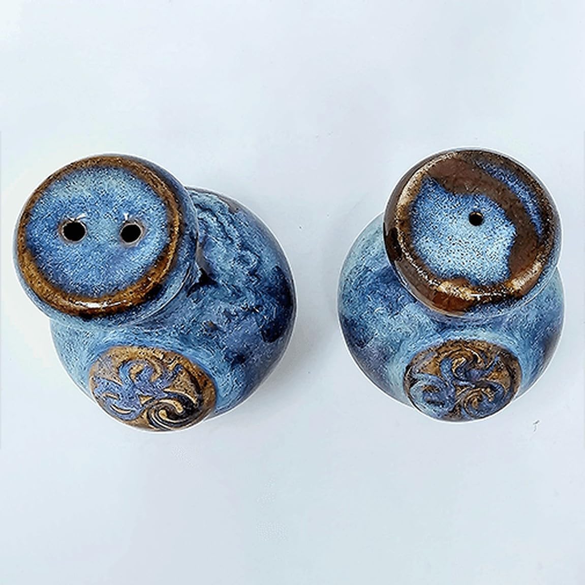 Our Colm de Ris Ceramic Salt & Pepper Shakers Set is a masterpiece of Irish artistry and functional addition to your kitchen. Crafted from 100% ceramic, this set boasts durability and resistance. Painted by hand in a color palette of blue, purple, and twilight gold, and featuring the Triskele, these one-of-a-kind pieces made by skilled artisans at Colm de Ris Irish Pottery will add elegance and sophistication to your home. Sized at 10 x 10 inches each and holding up to 10 ounces of your favorite spices, they offer easy handling and storage on your dining table or kitchen countertop. Whether a new addition to your own kitchenware or a gift for a dear one, this Irish salt & pepper shakers set will impress anyone.