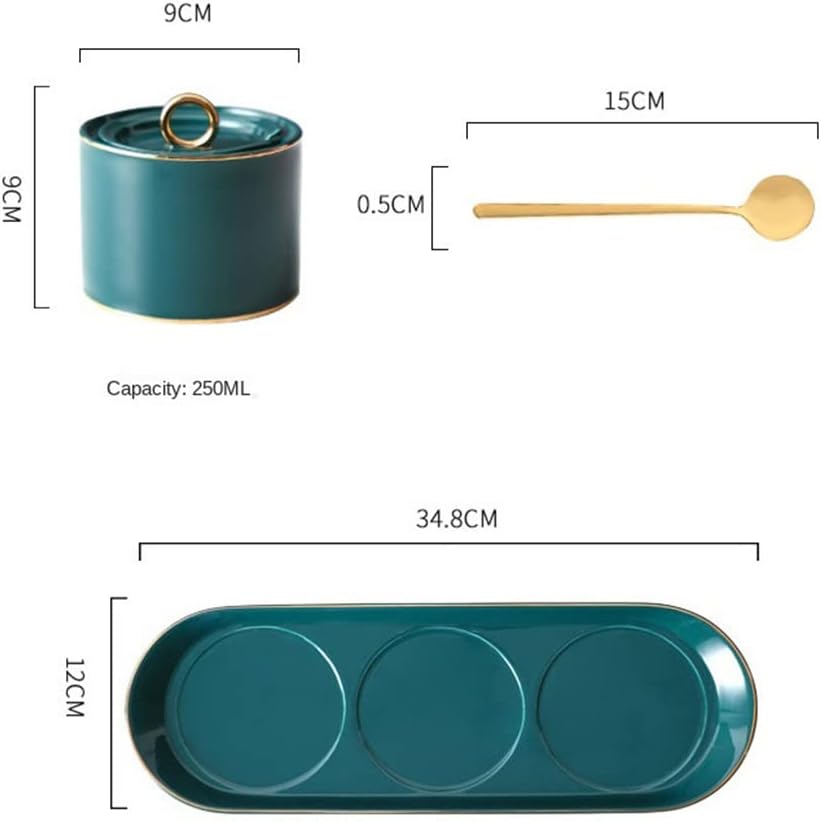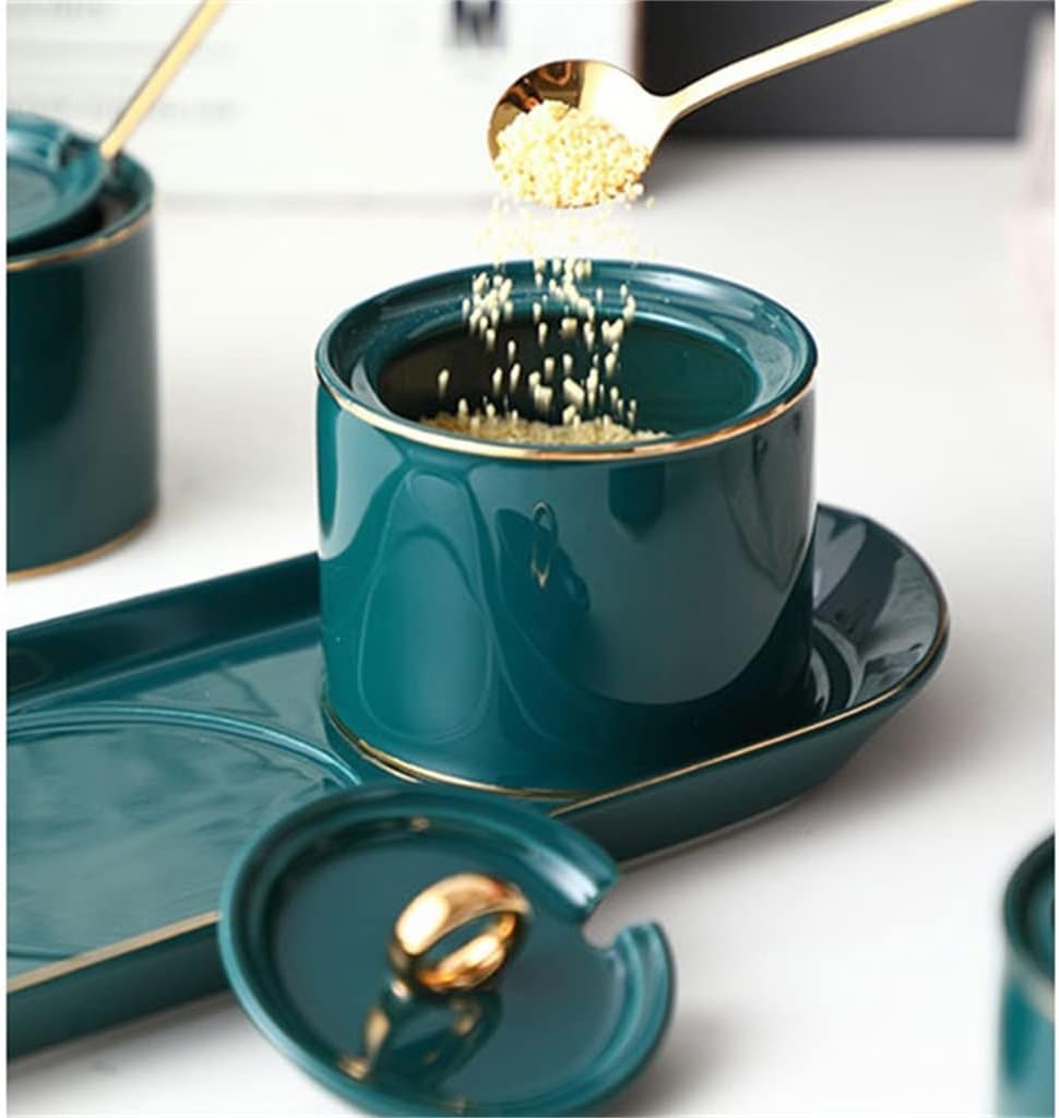 DescribeThe surface is bright, soft, smooth, crystal clear, safe and Practical and beautiful removable coverEasy to clean and reusable can and spoon design to prevent mixing of different seasoningsSmall volume and large capacityProduct parametersMaterial: CeramicApplicable space: kitchenColor: greenSize: 34.8*12*9cm: 3 Seasoning Jars+3 Spoons+1 TrayApplicable : the publicPackage includes: spice container * 1 piece (excluding other demo products)notes:1. Due to different monitors and lighting effects, the actual color of the product may be slightly different from the picture color. Thanks!2. Due to manual measurement, the allowable measurement deviation is 1-3cm3. Due to material and process problems, there will be some peculiar smell when receiving the goods. After washing, put it in a ventilated place to ventilate to remove odors.
