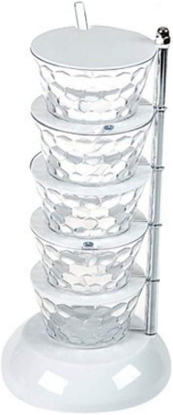 Material: plasticGross weight: 0.5KGApplicable : the publicSize: 12.5*26*8.5cmEach box is equipped with a small spoon that can contain seasonings such as salt and sugar for easy scooping.Three-dimensional storage saves space.The nut is removable for easy cleaning and sanitation.The metal strut has strong supporting force.The bottom of the structure adopts a large disc design, which makes the whole seasoning box more stable and will not overturn when taking the seasoning.