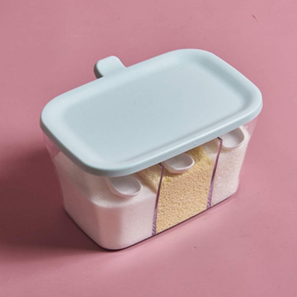 Color blue/pinkMaterial: ppSize: 17.7*13.4*10 cmThe transparent clamshell design makes the internal seasoning clearly visible, and is dust and -proof.Each compartment is equipped with a spoon to precisely control the amount of seasoning.prompt:Do not use hard objects or corrosive liquids to clean the baby to avoid injury.The shooting angle and light are different, the chromatic aberration of the project is normal, and the quality is the same.