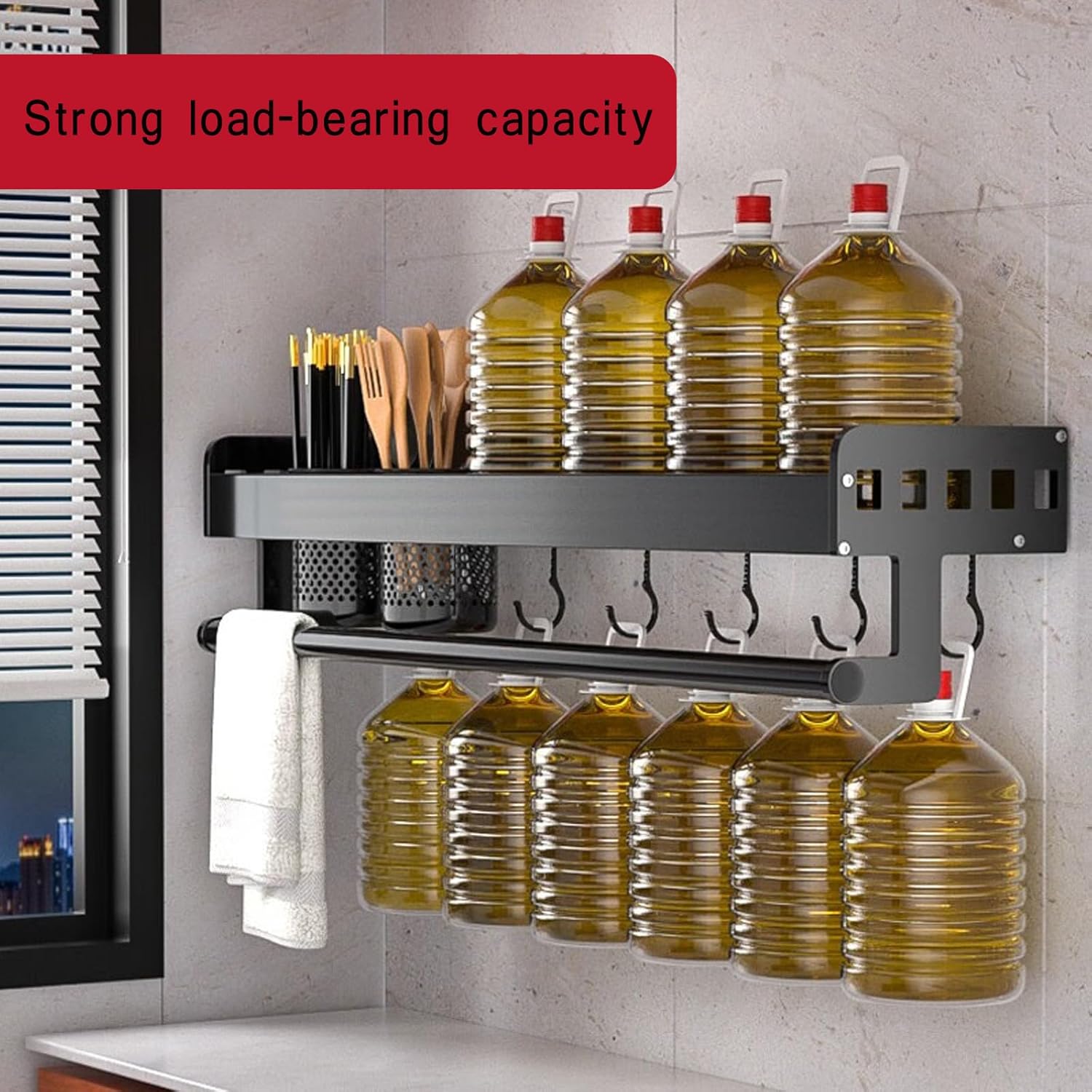 Spice Rack Wall Mounted Metal Kitchen Shelf Hanging Kitchen Hanging Condiment Holder Utensil Rack Seasoning OrganizerFunctionThe wall-mounted spice rack is made of aluminum material, which is corrosion-resistant and does not rust.Drilled or no-drilled mounts are fine, for heavier items you can use screws, and for lighter items you can use superglue.The drilling-free installation method is suitable for smooth walls.The seasoning rack has multiple functions, and can store seasonings, cups, chopsticks and other kitchen supplies in different areas.featureMaterial: Aluminum and ABSColor: GraySize: 50cm*13cm*12cm, 60cm*13cm*12cm, 80cm*13cm*12cm.