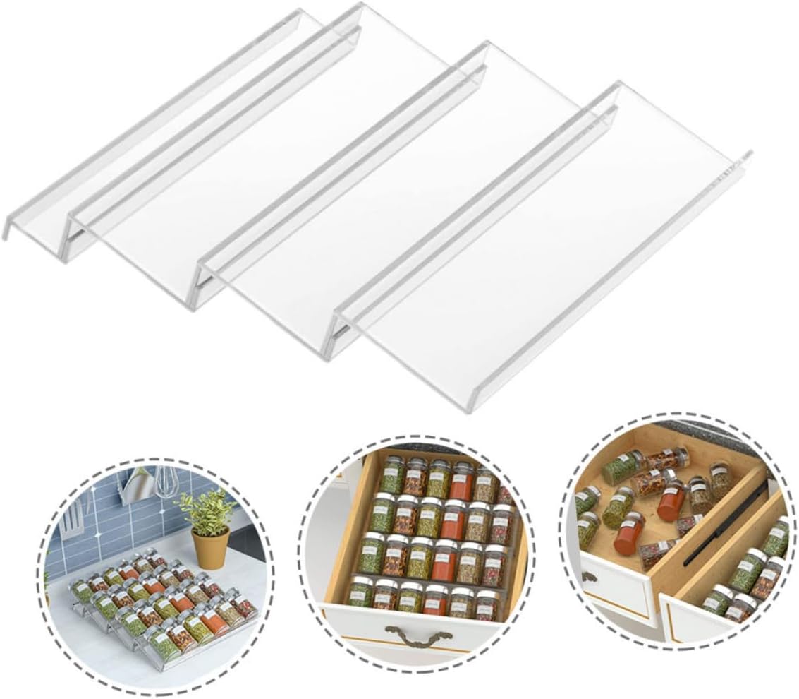 Package List 1 x Spice Bottle Rack Set Characteristics - Size: 45.00X34.00X4.30 cm/ 17.68X13.36X1.69 inch. -Product Info:Seasoning storage rack - Material: Acrylic. - Color: Transparent. - It has strong bearing capacity, is not easy to be damaged, and can be used for a long time spice rack drawer insert. - Easy to install, just place in it kitchen drawers and to the size that fits. - This storage rack can store various seasoning bottles, spice bottles, sauce bottles, etc cabinet spice organizer. - Made of premium acrylic materials, strong and , not easy to deform. - The tilted design make it quick and easy to find the spice bottles, convenience to use kitchen spice drawer insert.Goods InformationPlastic Spice Rack Using acrylic materials, , multi-tiers design can store more seasoning bottles in the kitchen.spice drawer organiser This not only saves space, but also puts all the spice bottles in your drawer.space saving spice rack organizer Do you need a seasoning rack? If so, our product can meet you needs