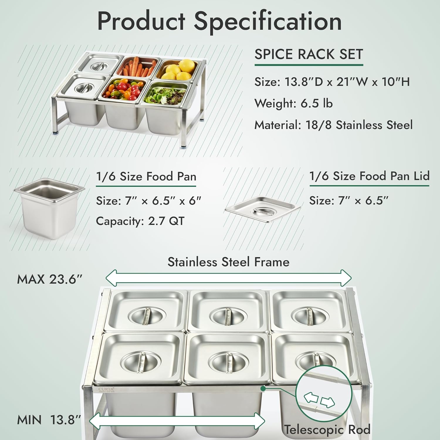 | Size | 6 Pan Stainless Steel |