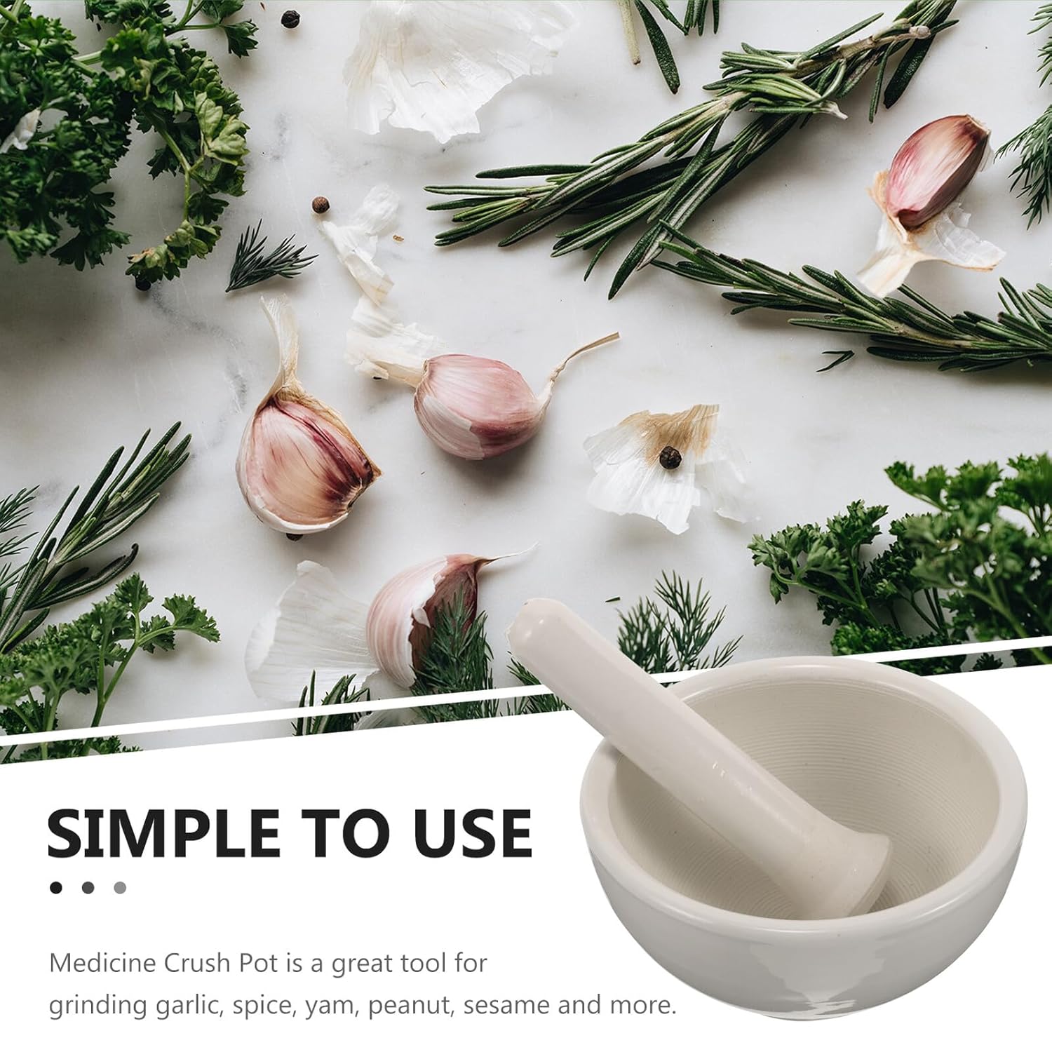 Package Include 1 x Bowl 1 x Pestle Features -Material:Ceramic seasoning grinding bowl -Size (pestle):16.00X4.50X4.50cm/6.29X1.77X1.77in garlic grinding bowl -Color:White crushers for kitchen -Size (bowl):15.50X15.50X7.50cm/6.09X6.09X2.95in nut grinder -Product Info:Ceramic material bowl -Pills Grinding Bowl is easy and convenient to use, and easy to store when not in use spice grinder bowl. -Especially suitable for use in the kitchen, and can also be used in pharmacies to grind tablets for household crush pot. -Ergonomic, comfortable to hold, smooth surface, and will not hurt your hands after long-term use grinding bowl for kitchen. -The Grinding Tool is made of good ceramic materials, and easy to use crush pot for restaurant. -Grinding Bowl can grind food and Ingredients simply and to make food more delicious garlic pounder.Goods Informationspices crush pot Are you looking for a professional and practical bowl set? Are you looking for a sturdy, portable garlic ? If so, look no further! Our bowl and pestle are made of ceramic material.household pestle They will definitely meet your needs