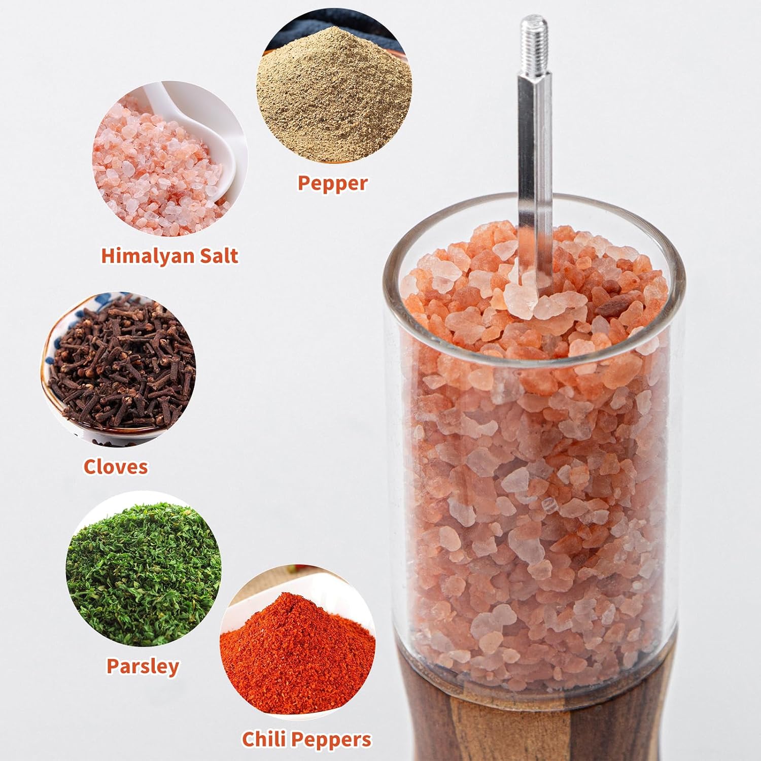 | Included Components | Salt and Pepper Grinder, wooden base |