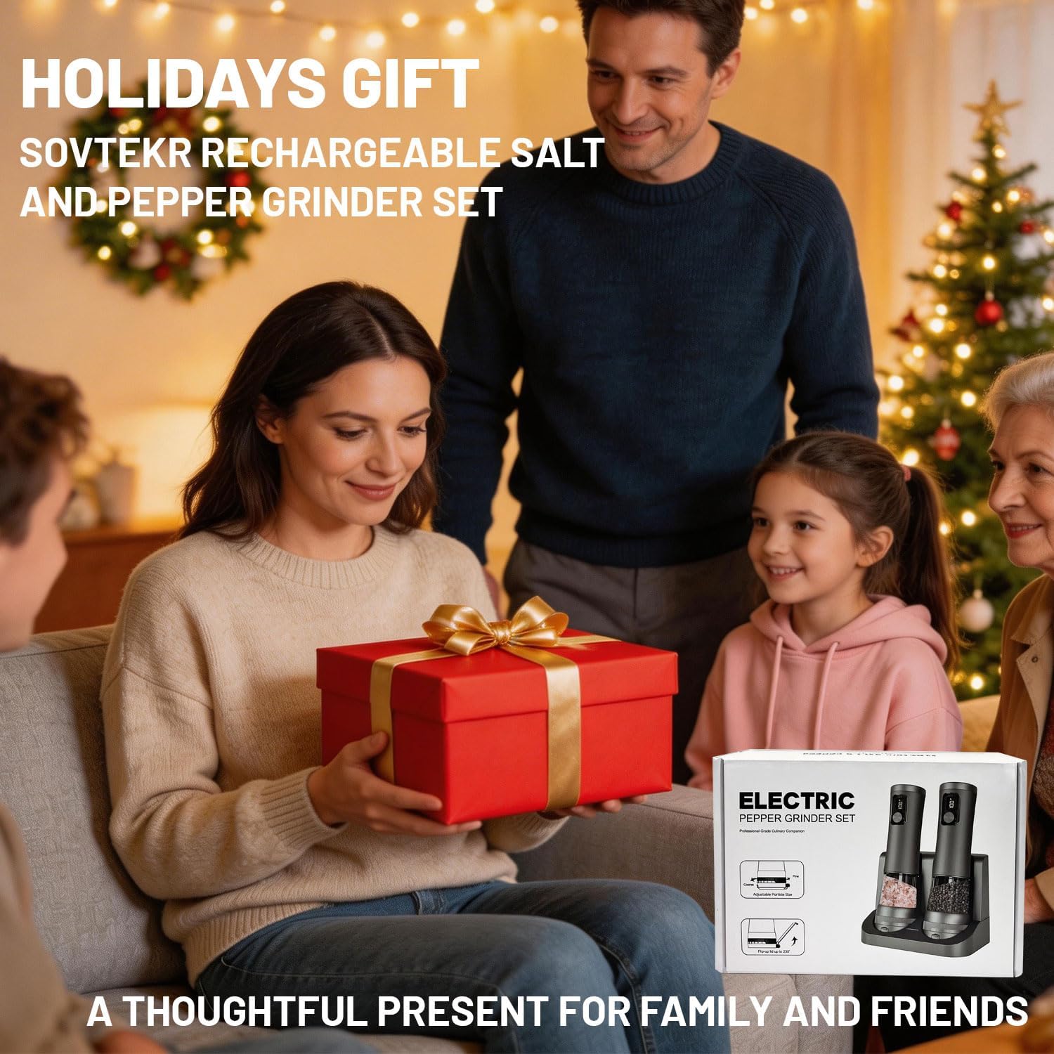 Sovtekr 110ml*2 Electric Salt and Pepper Grinder Set, 5 External Adjustable Coarseness Upgraded 2-Speed Setting, Battery Display Rechargeable Base, Easy for Kitchen & Outdoor