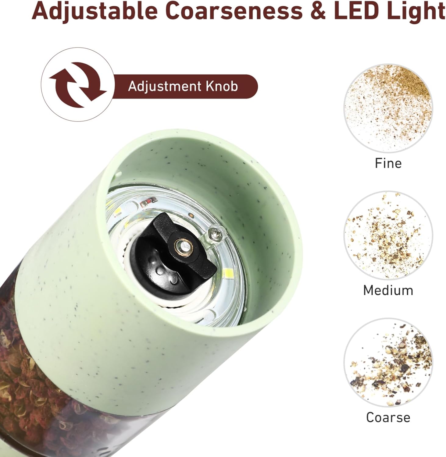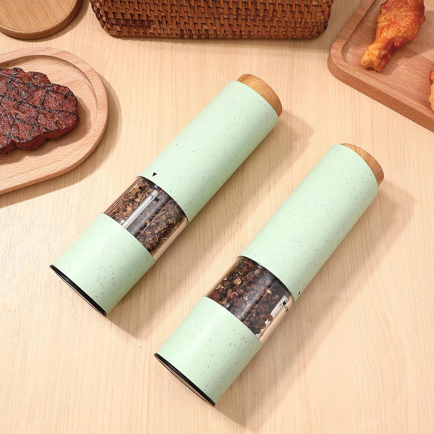 Package List 2 x Electric Grinders 1 x Holder Characteristics -Material:Wheat Straw, Wood, Acrylic salt grinding tool -Battery: 6 x AAA Batteries (Not Included) sea salt pepper shaker - Size:20.40X5.20X5.20cm/8.02X2.04X2.04in adjustable pepper -Color:Multi pepper with holder The sealed cap prevents salt from hardening due to moisture and keeps condiment fresh and long-lasting pepper. Thanks to the acrylic transparent outer cup, you can always see how much condiment is left in the container electric pepper grinding tool. This electric is suitable for home, hotel, restaurant and other occasions, can be used as a present sea salt. The pepper has adjustable coarseness, can choose the degree of grinding you want salt pepper. Equipped with a holder, this allows you to easily remove and place with one hand pepper for kitchen.Goods Informationsalt grinding tool And it is suitable for sea salt, pepper, cumin, etc.kitchen salt Our product includes 2 pepper grinders and a holder.electric salt And it is a wonderful helper for kitchen.salt pepper shaker It has adjustment knob for adjustable coarseness.salt pepper If you are still looking for a professional pepper , please consider choosing this product
