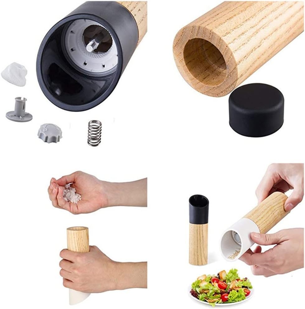 They're sleek and elegant and suitable for kitchen-to-table use.Our salt and pepper mill set features an adjustable grinder that allows you to finely , grind and grind spices to perfection.Fully detachable design, easy to disassemble the grinder for easy cleaning and cleaning.They include an airtight back cover that fits perfectly, keeping your ground spices fresh, away from and dust, and leaving no unwanted on your desk.Great for small grain spices like sea salt, kosher salt, pepper, flax seeds, sesame seeds, cumin seeds, mung beans, etc.Specification:size:15*4.5cmProduct capacity: 22MLMaterial:Wood + plasticcolour:White/blackPackage Included:1* spice grinder If you have any questions about the product, please me, we will you within 24 hours and give you a satisfactory answer.Due to manual measurement, please allow for a difference of 1-3 centimeters. Thank you for your understanding
